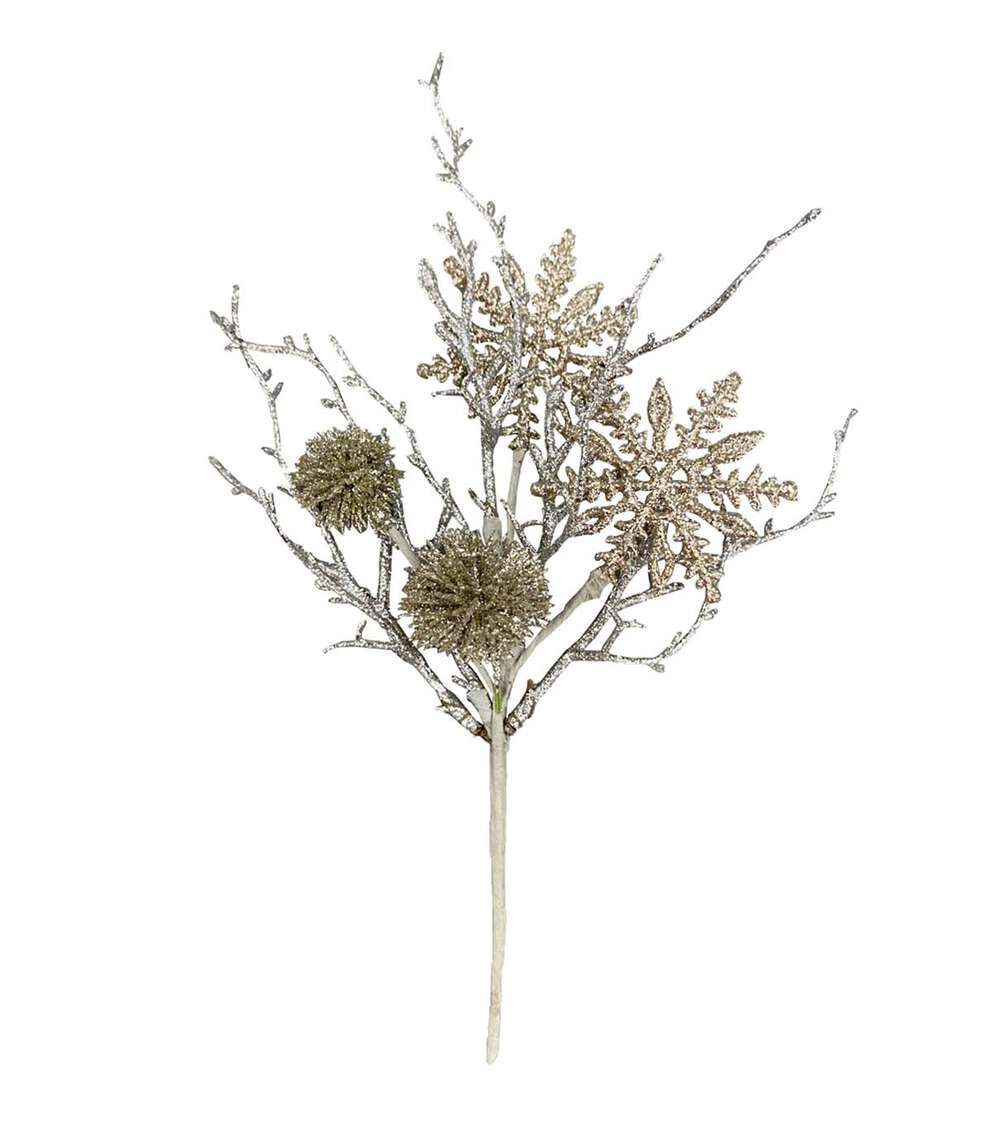 Add a Festive Touch to Your Holiday Decor with the 10″ Christmas Twig With Silver Snowflakes Glitter Pick by Bloom Room
