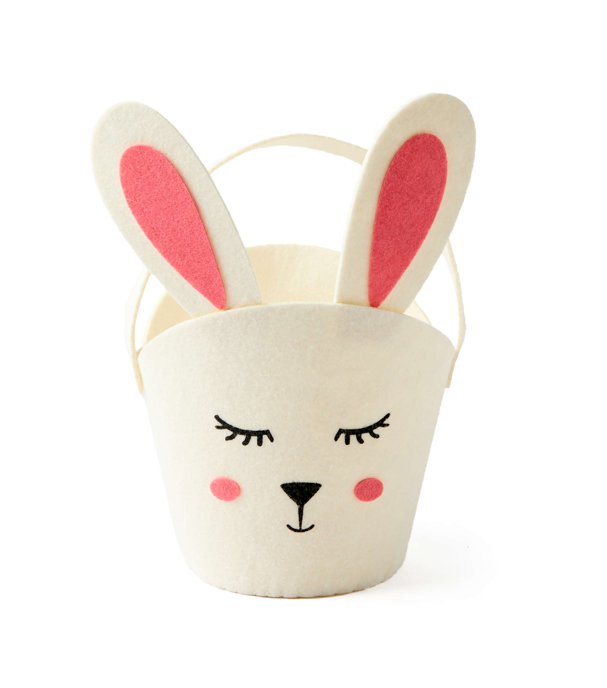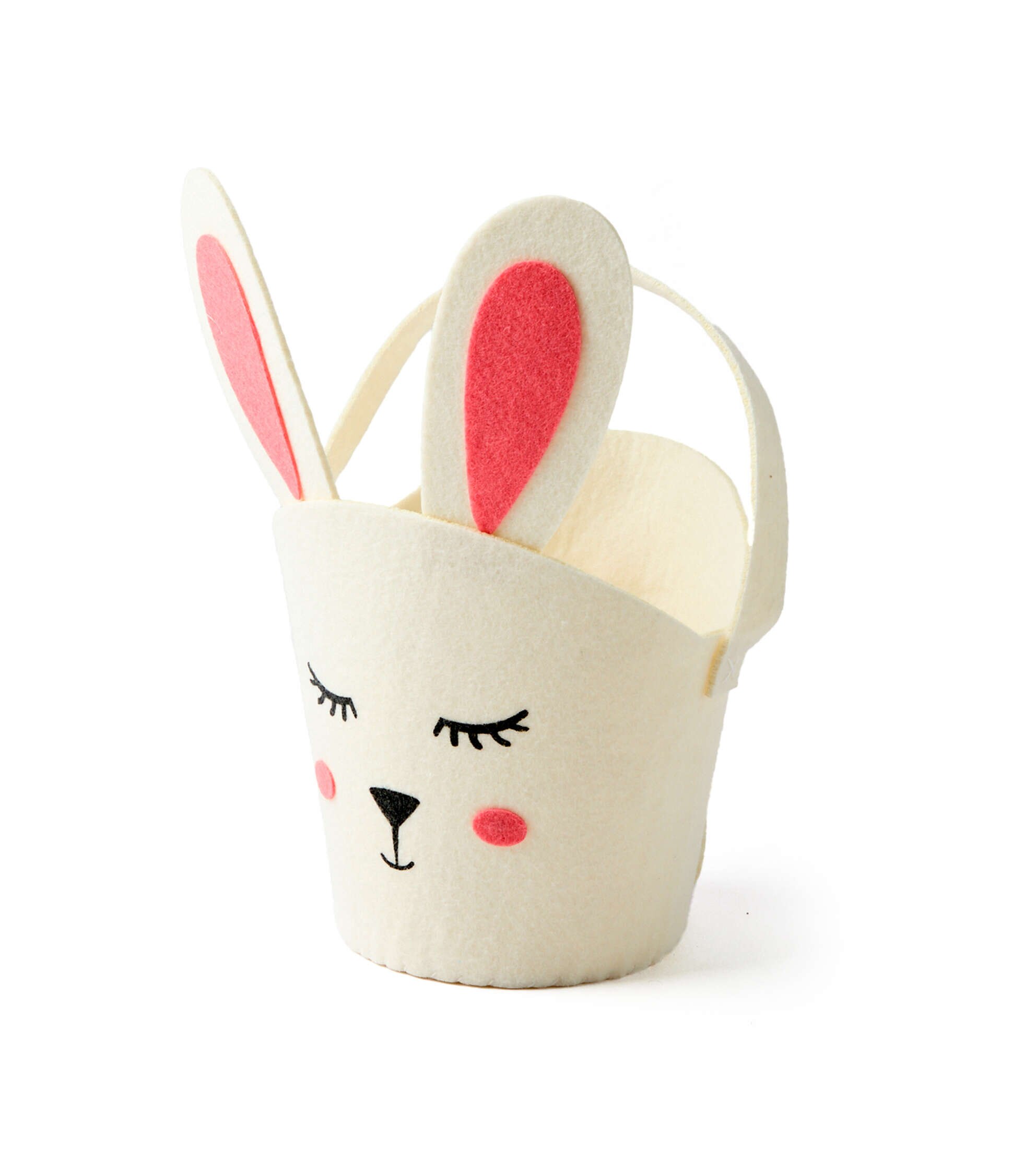 Get Ready for Easter with the 11″ Easter White Felt Bunny Basket by Happy Value