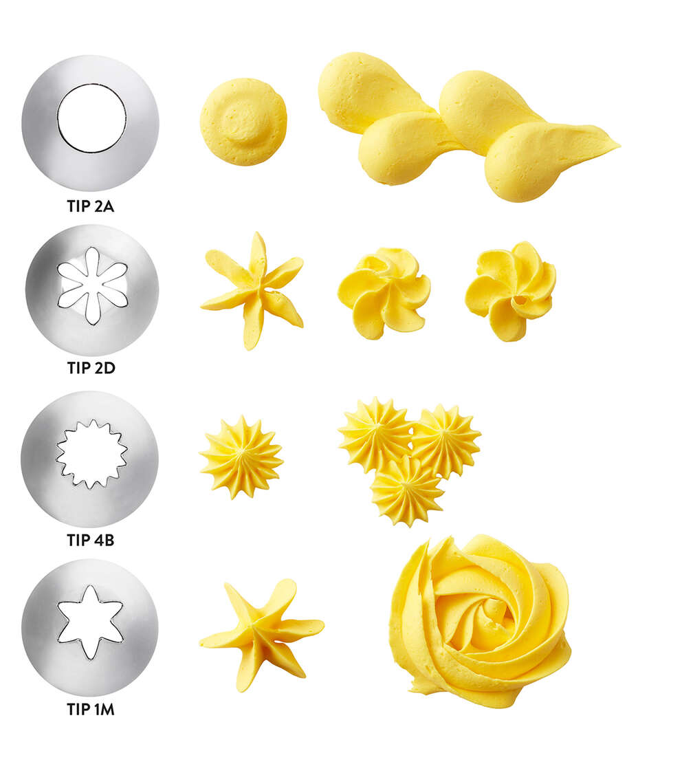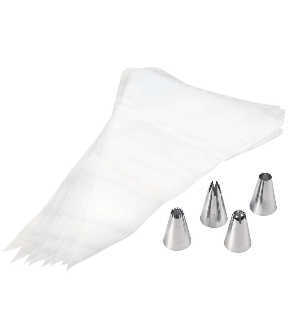 - Includes tips 1M, 2A, 2D, 4B and 8 disposable decorating bags