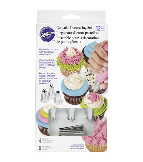 Pair your love of cupcakes with your love of creativity using these Wilton cupcake decorating tips. With this cupcake decorating set you can create beautiful designs such as stars, rosettes, shells, dots and swirls using icing tips and eight 12-inch disposable piping bags.