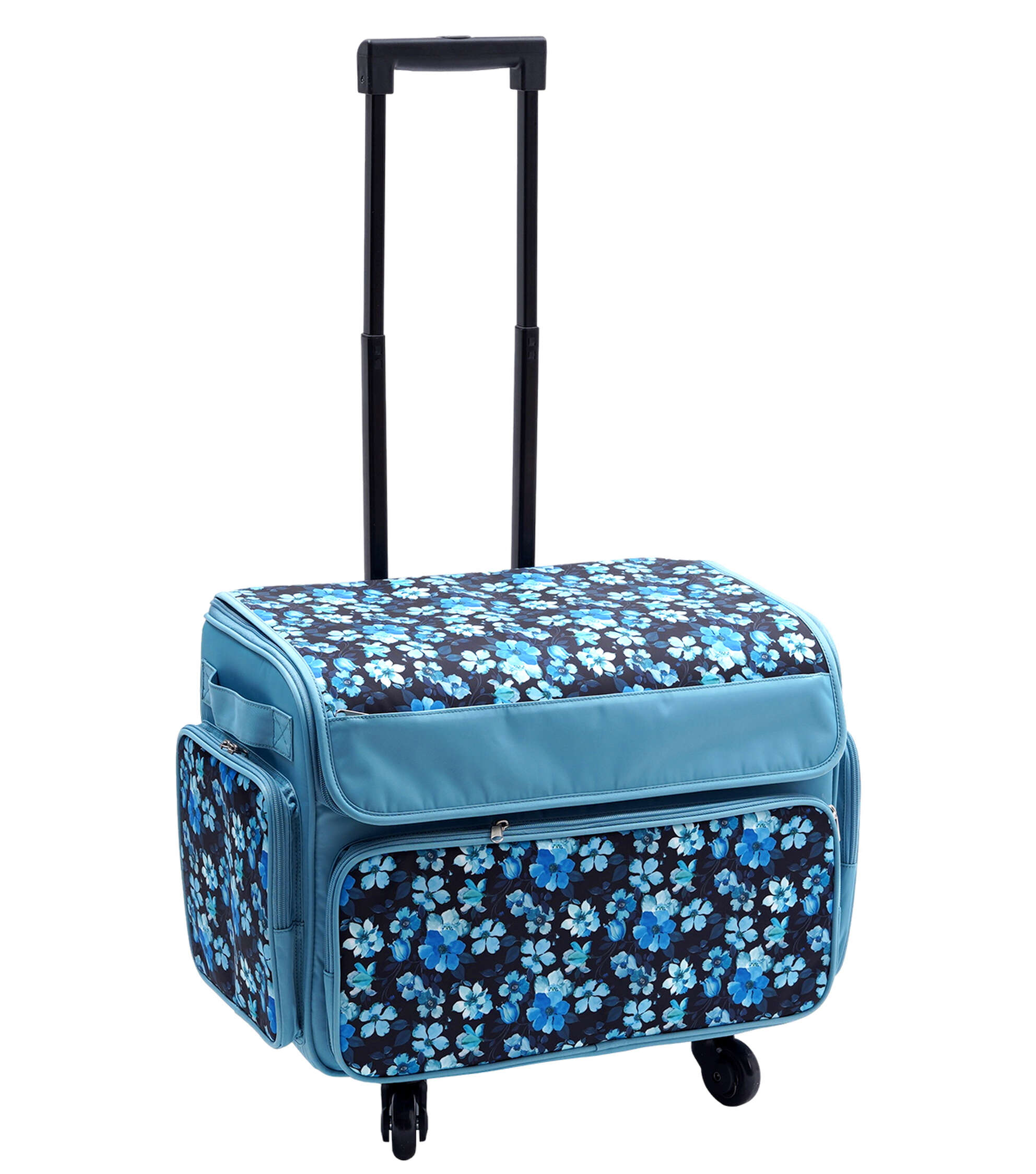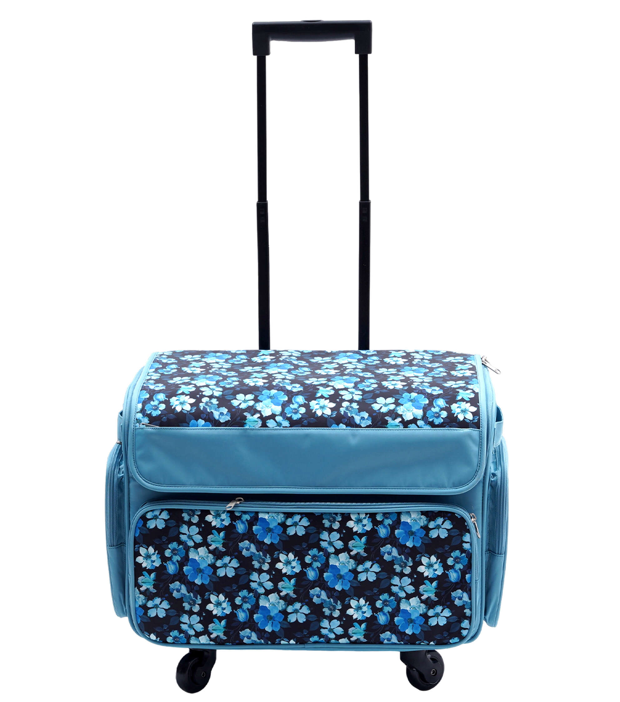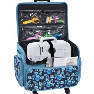 Stay Organized and Stylish with the Top Notch Blue Floral Rolling Sewing Storage Tote