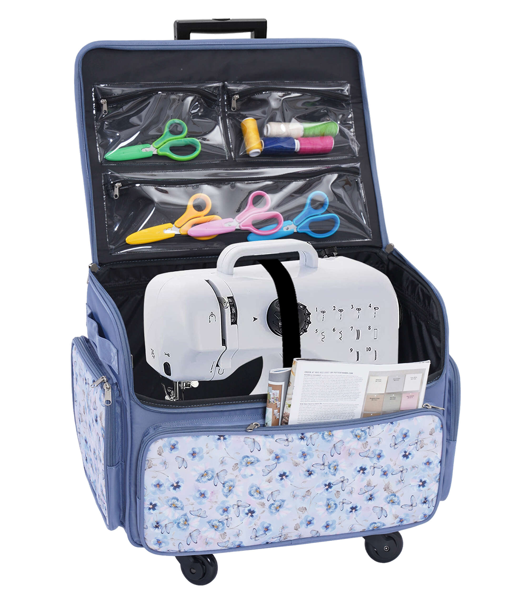 Stay Organized on the Go with the 13″ x 18″ Lilac Butterflies Rolling Sewing Storage Tote by Top Notch