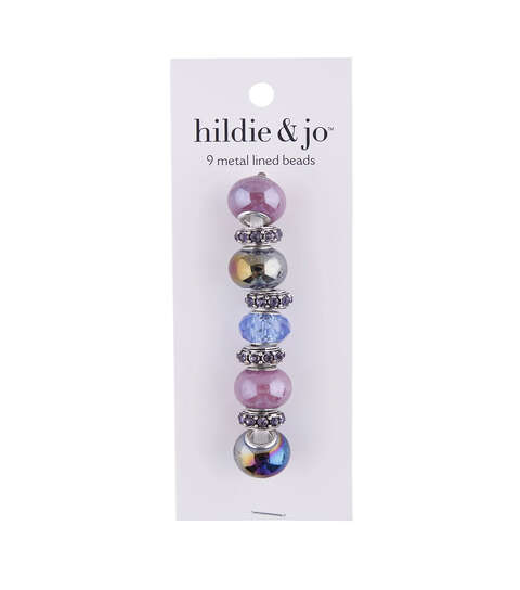 Use the hildie & jo Mix & Mingle Metal Lined Glass Beads – Black & Purple to accentuate your elementary jewelry designs. This string contains purple, blue and iridescent beads paired with studded silver-toned spacer beads for added charm. Use these 15 mm metal and glass beads to add a personalized touch to your long necklaces, earrings and bracelets. You can also team them with little charms and pendants to create unique designs.