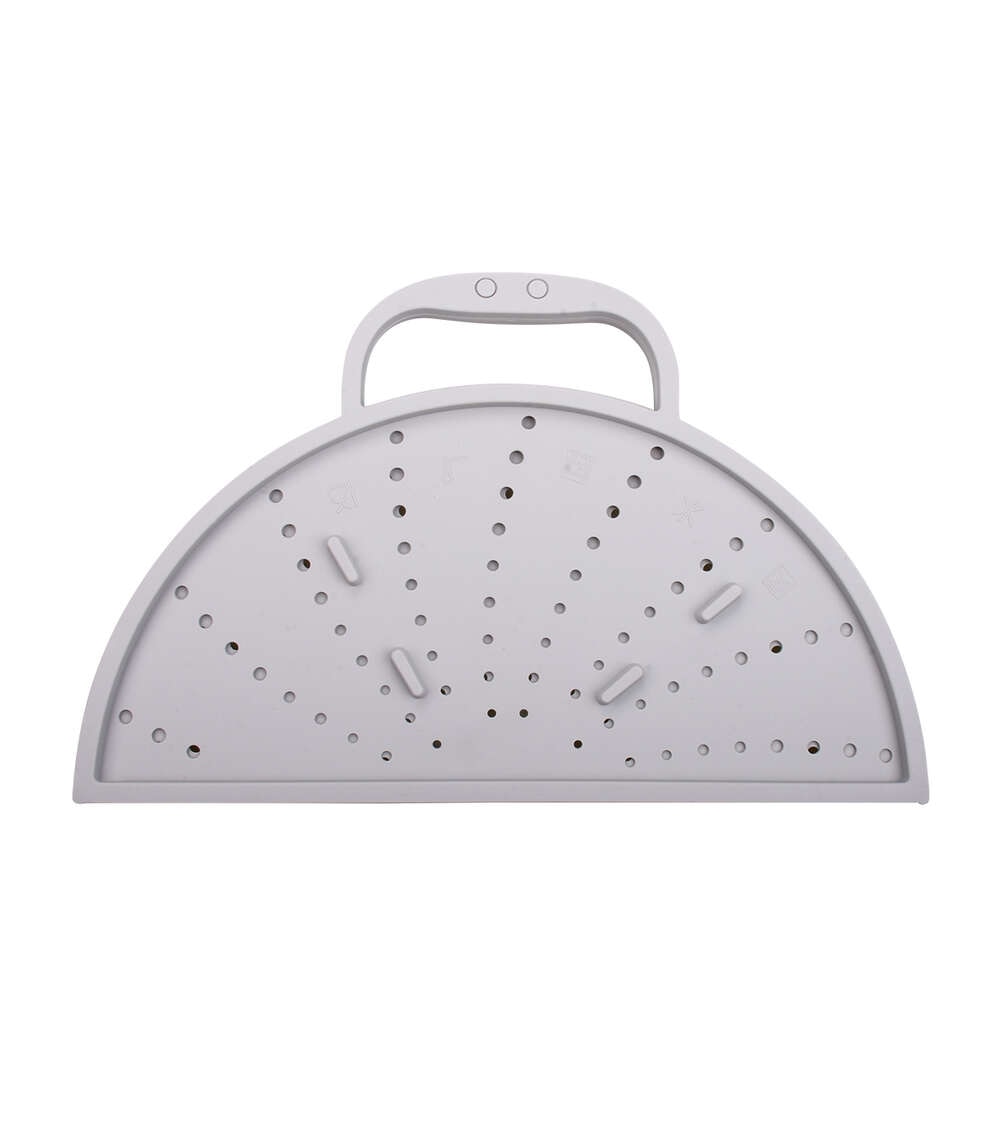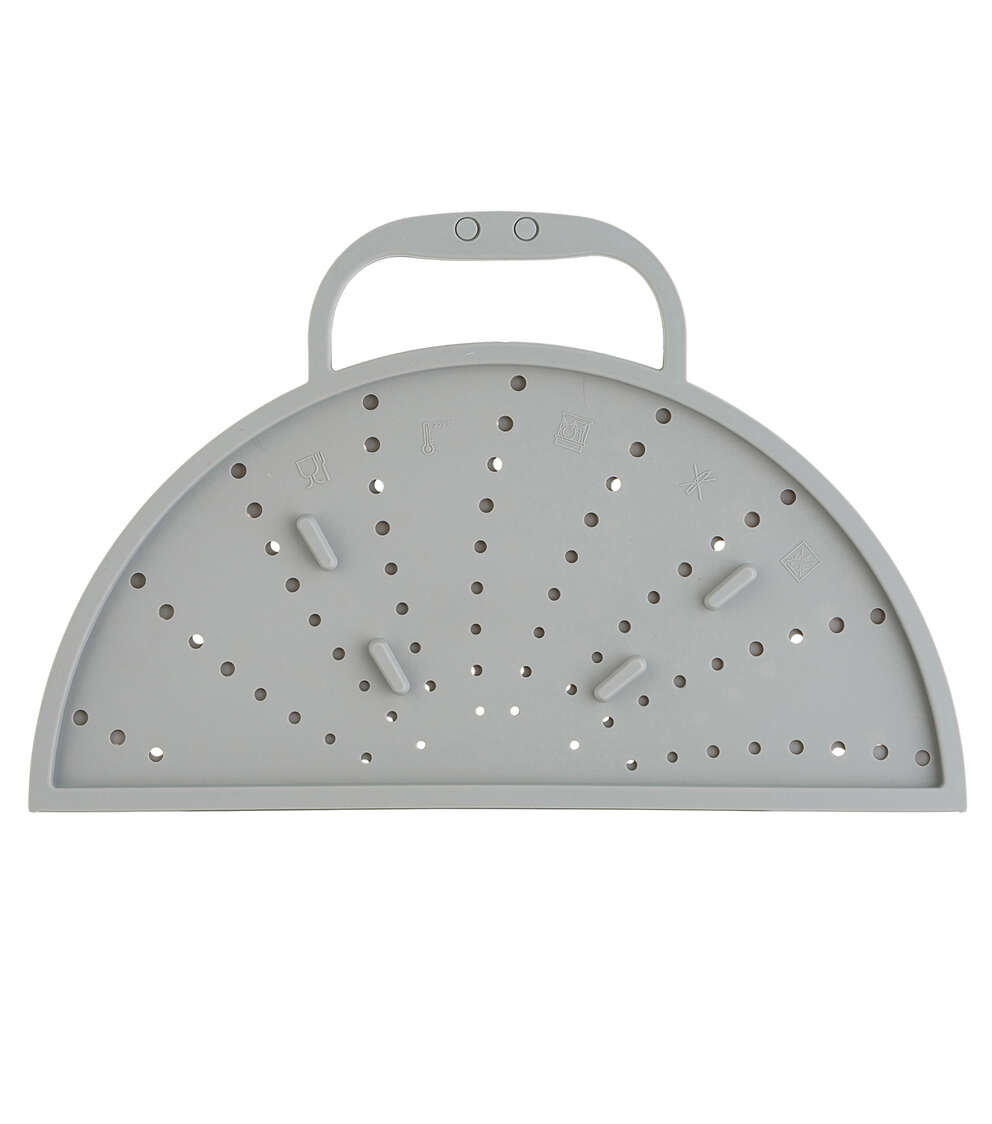 Use this foldable splatter guard to protect your stovetop and counters while cooking. With a 12.5 in. diameter, it will easily fit over most pots and pans. The silicone is easy to clean and reinforced with stainless steel for stability.