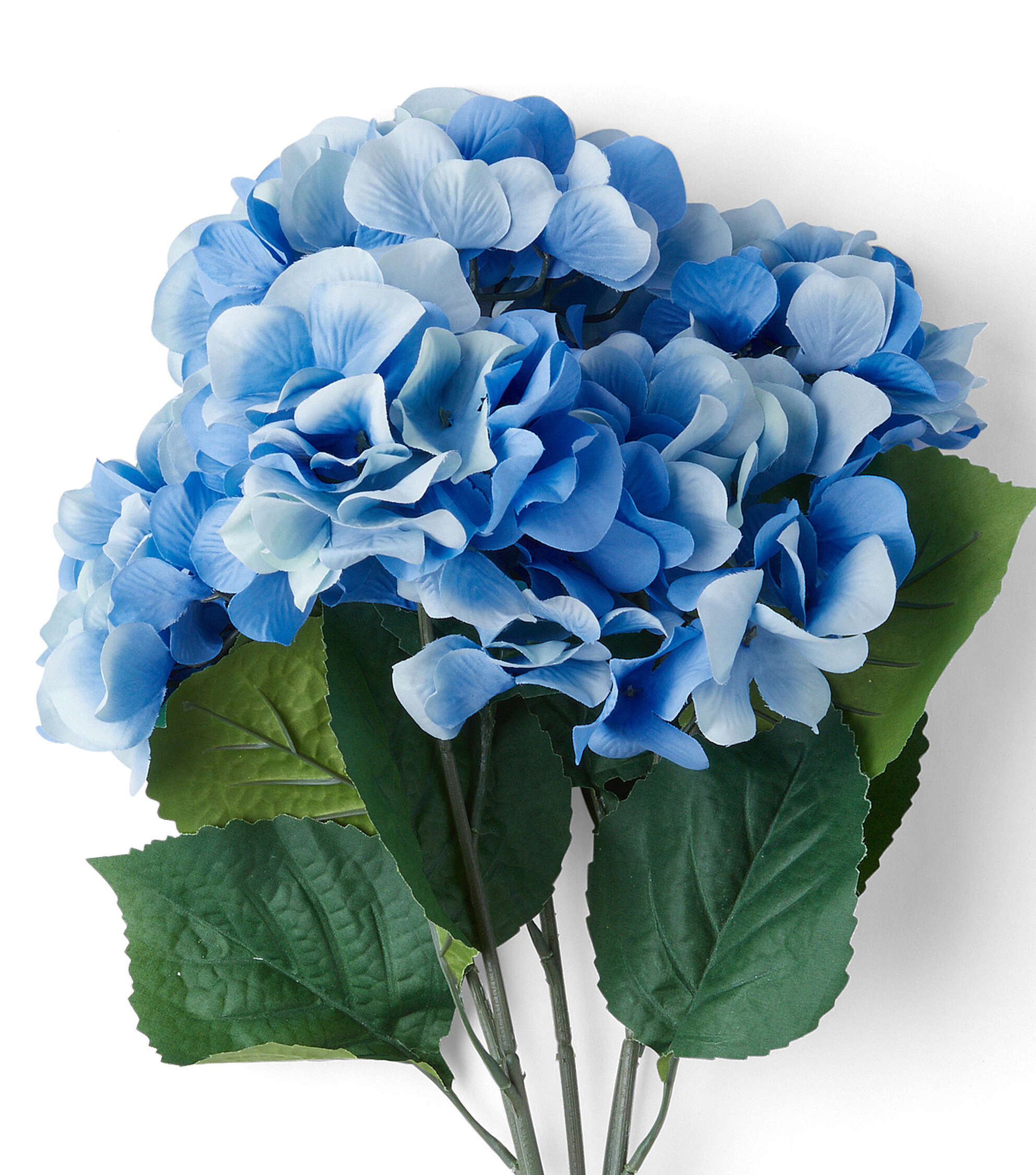 - Features five beautiful blue hydrangea blooms with flower heads ranging in size from 4 inches to 7 inches