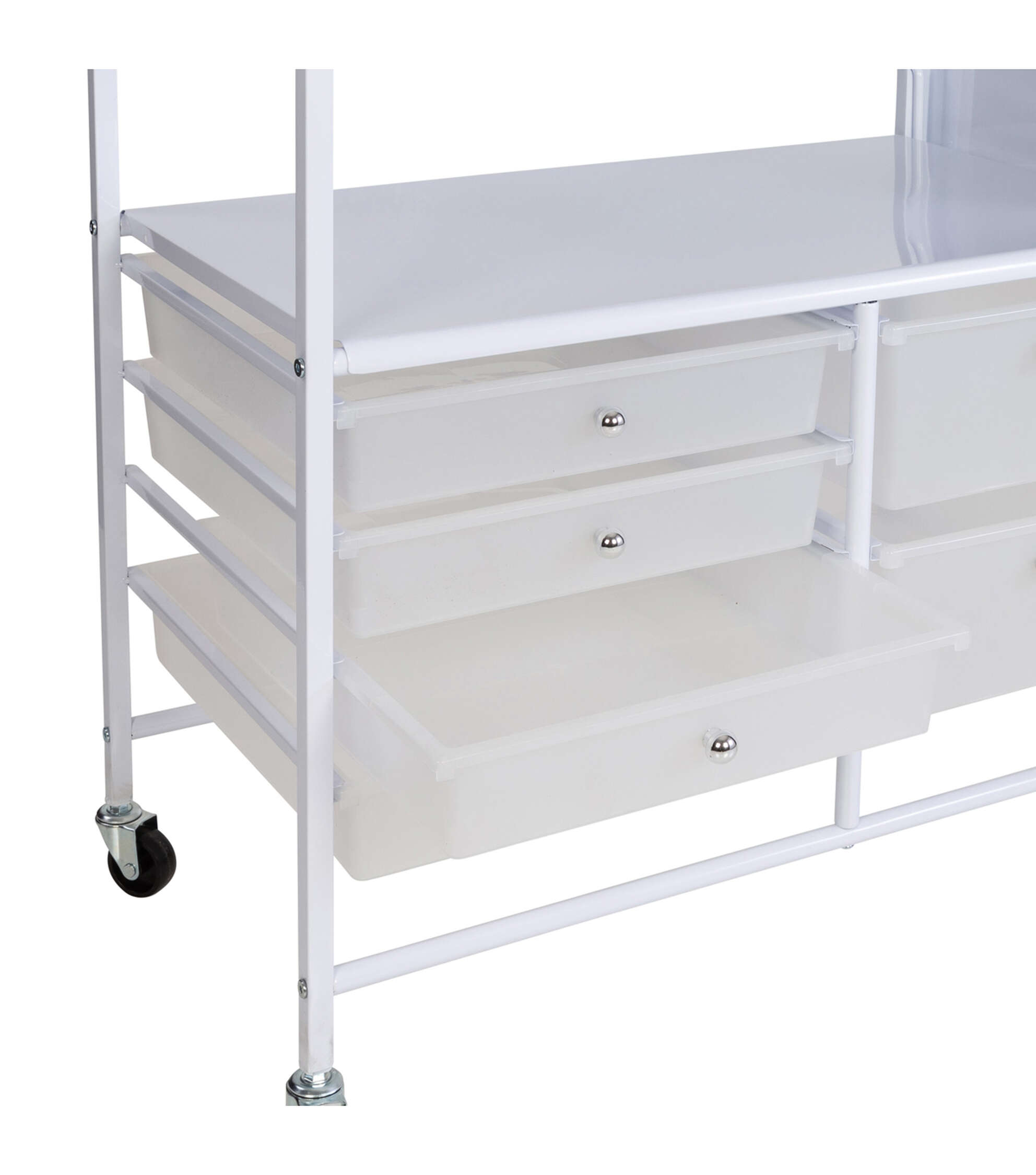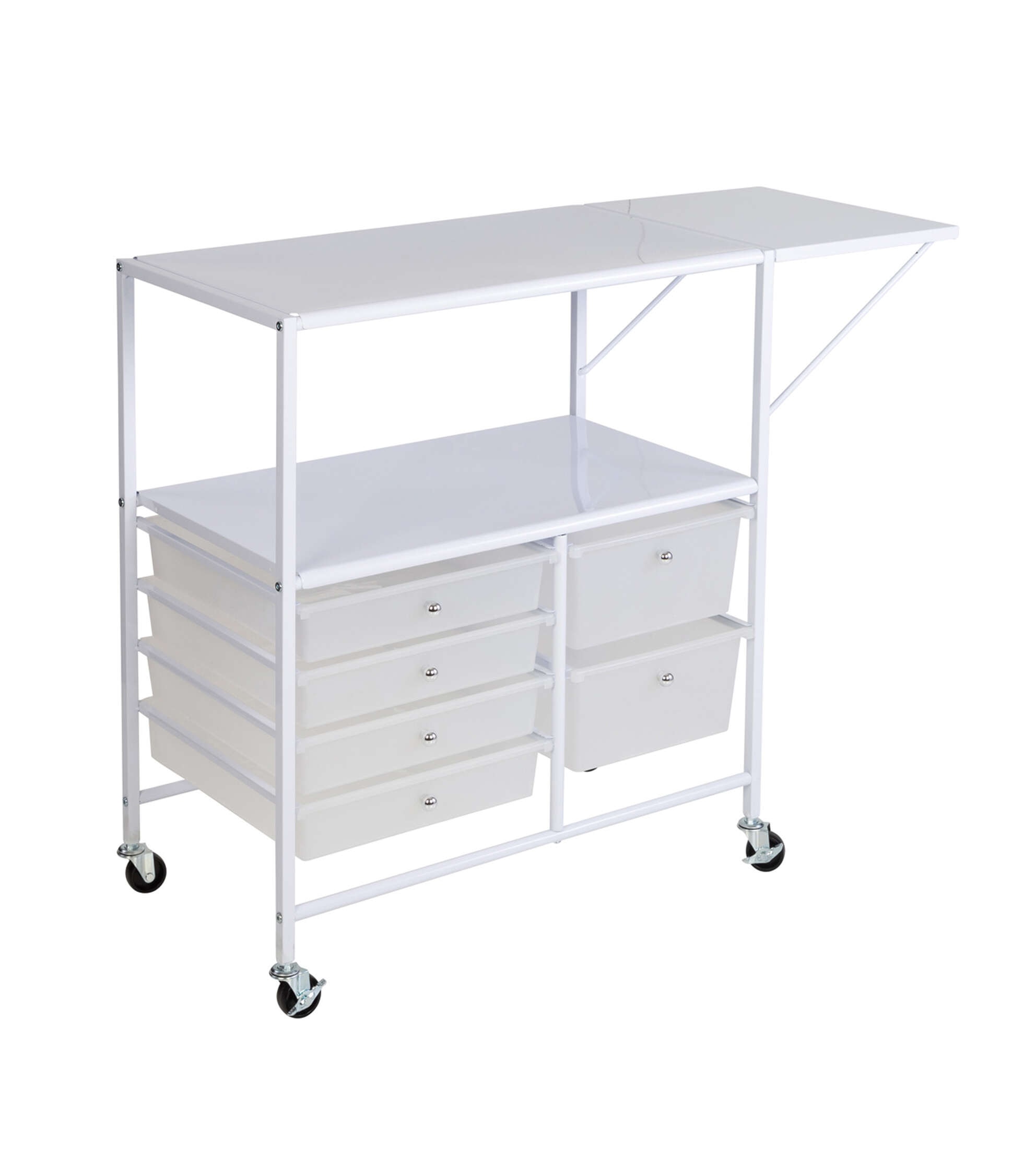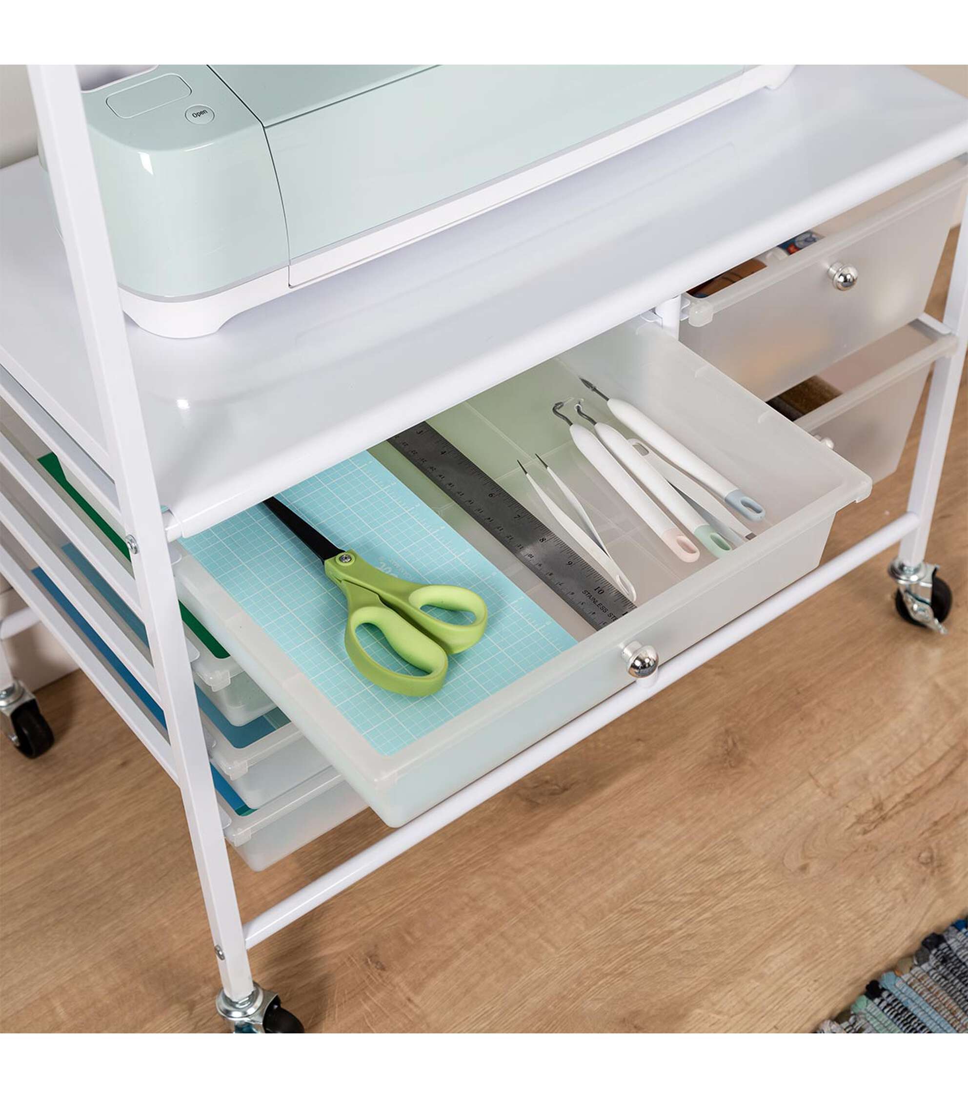 Let’s be real, your crafting area can get rather cluttered. Not for long with this 6-drawer craft cart that has a variety of drawer sizes because, well, your crafting supplies are not a one-size-fits-all. This cart features an work surface that can extend from 28-inches all the way to 40-inches, giving you flexibility in your work space. And casters allow you to roll it around the room wherever creativity calls, or lock two of the wheels for stability.
