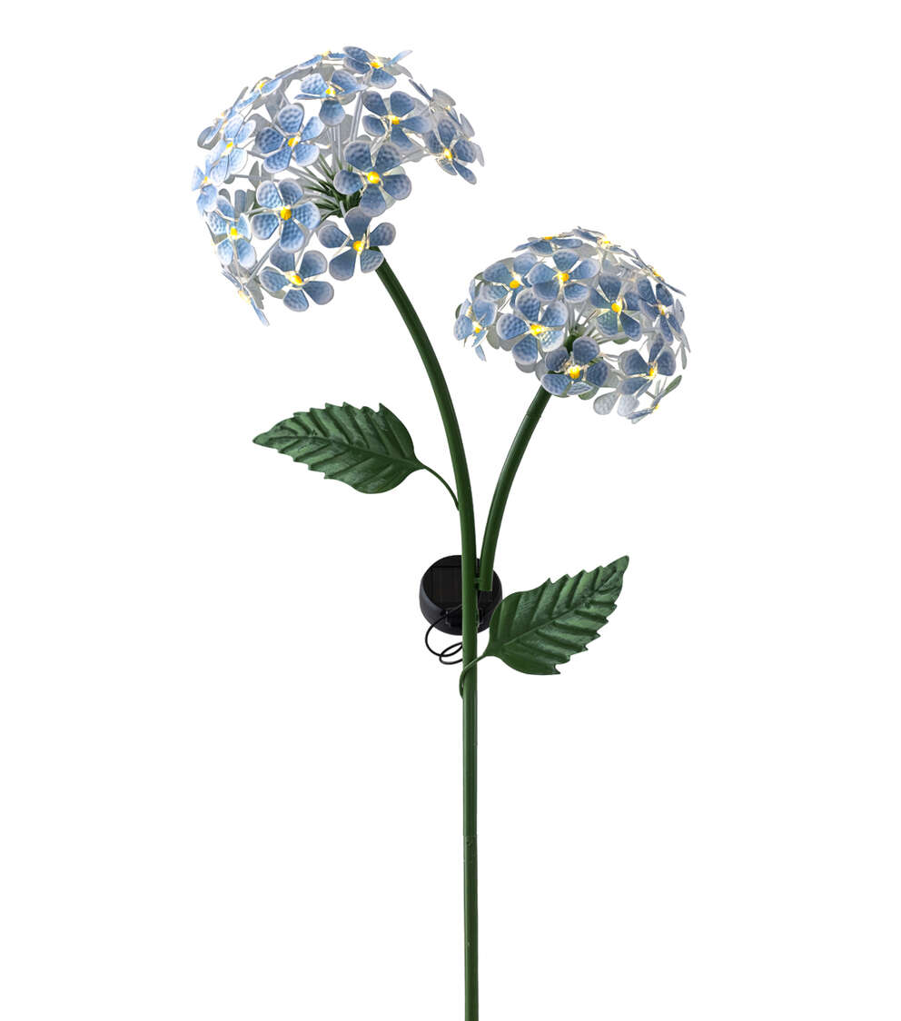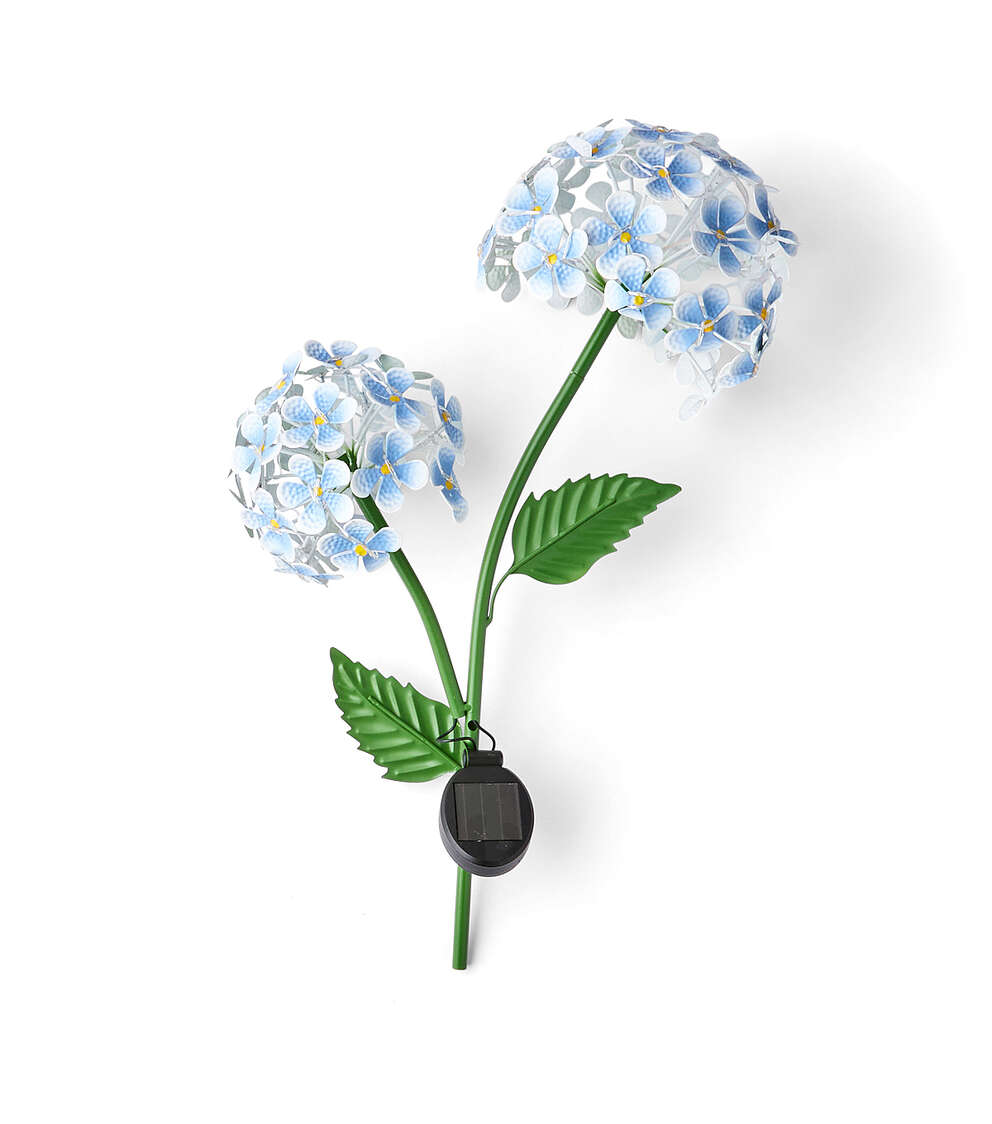 Bring a Pop of Color to Your Garden with the 42″ Blue Metal Hydrangeas Solar Yard Stake by Place & Time
