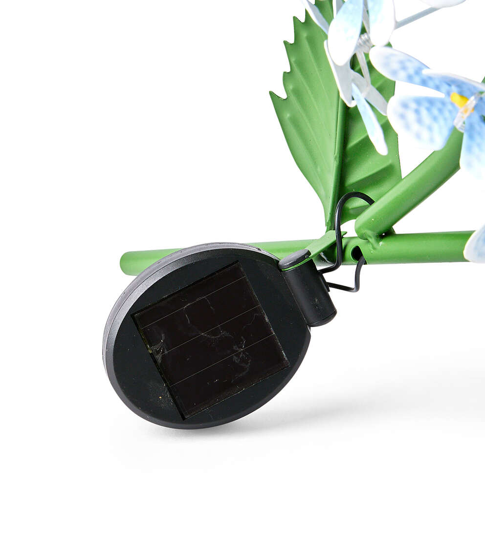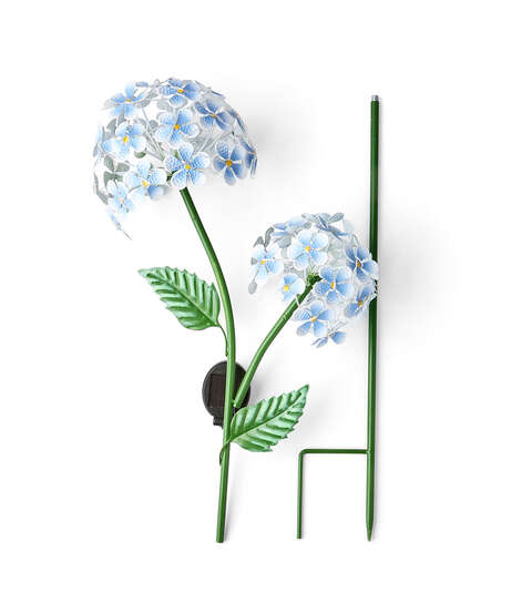 Add a touch of whimsy to your outdoor space with this beautiful solar yard stake. The stunning blue metal hydrangeas will add a pop of color to your garden, while the solar-powered light will illuminate your yard at night. Perfect for adding a decorative touch to your landscaping, this yard stake is sure to impress.