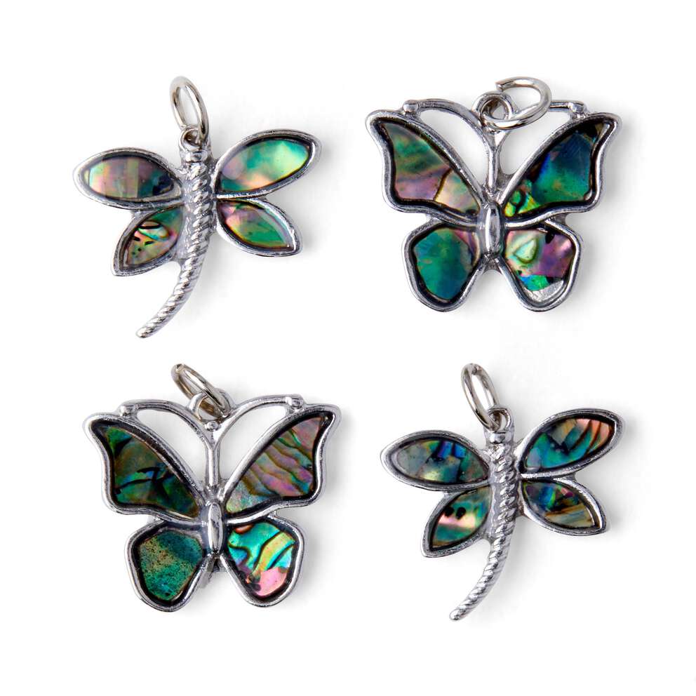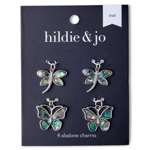 The beautiful hildie & jo Abalone Shell Dragonfly & Butterfly Charms will let you create one-of-a-kind jewelry designs. This pack contains four charms, two are shaped like a butterfly and the other two resemble a dragonfly. Inlaid with abalone shells, they look stunning. Use them to put together elegant bracelets and neckpieces. You can also gift them to a close friend.