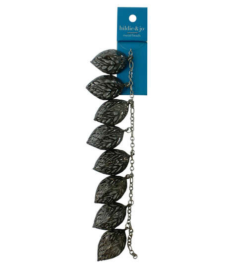 Give your old jewelry a makeover using the hildie & jo Metal Black Leaf Beads on Silver Chain. This chain strand sports eight leaf-shaped beads in a black shade that are attached to a chain in the center. Each bead flaunts three open leaves connected with clear round crystals in the center. These beads are great for any DIY project.