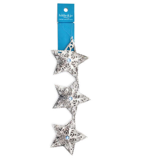 Gorgeous and eye-catching, the hildie & jo Metal Filigree Star Connectors – Silver & Light Blue will take your project to the next level. These star-shaped connectors sport a lovely filigree pattern and are studded with a light blue crystal in the center. Team them with coordinating beads and charms to create a range of jewelry projects. They can also be used to embellish bags, purses and more.