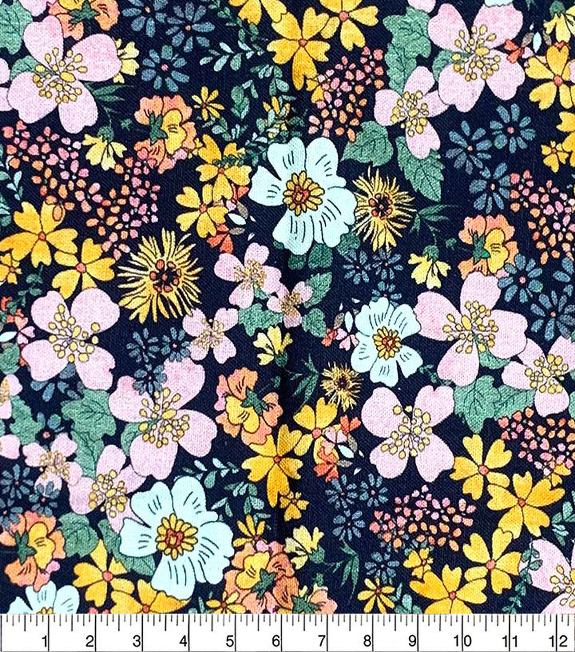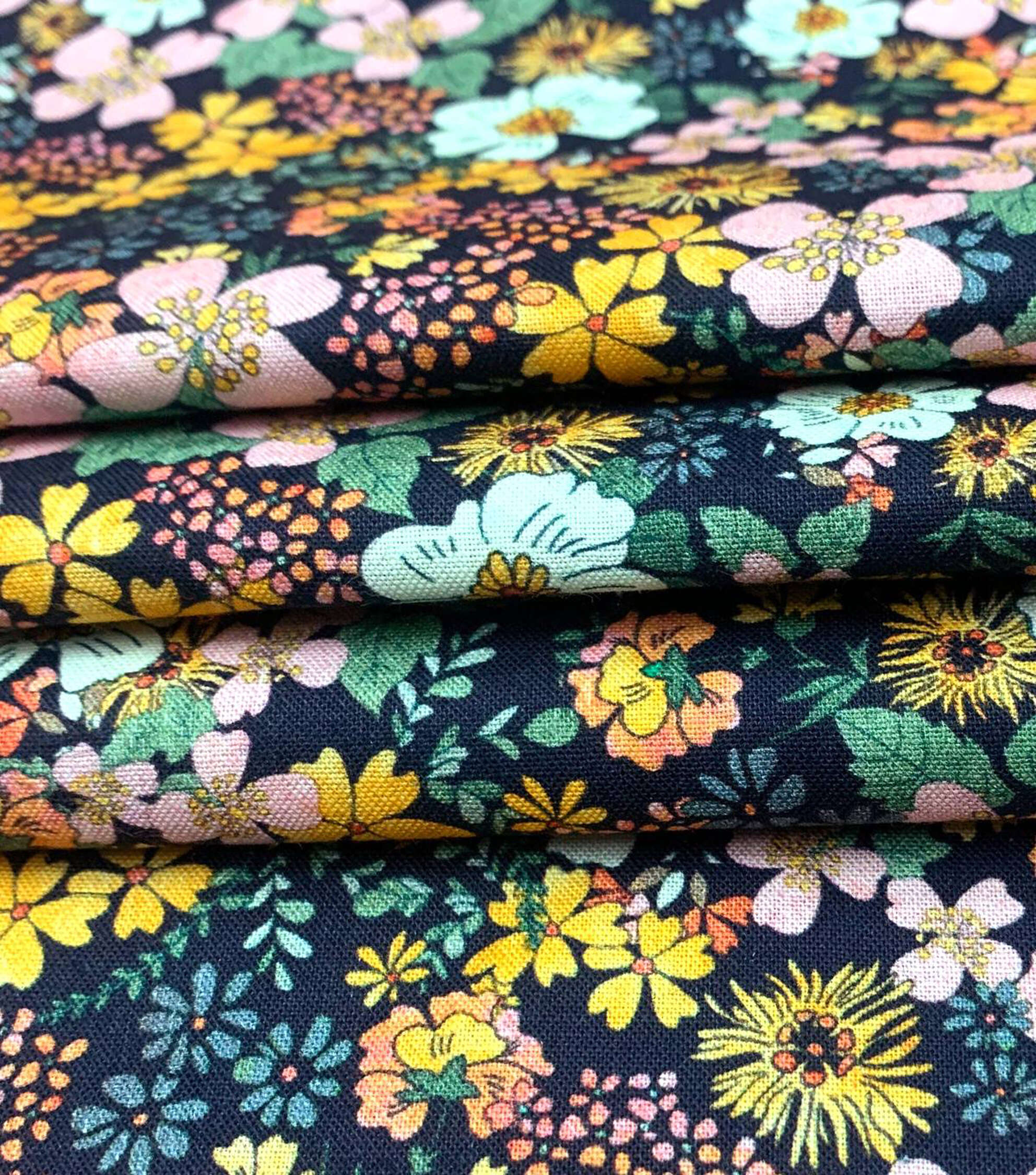70s Floral on Blue Quilt Cotton Fabric by Keepsake Calico