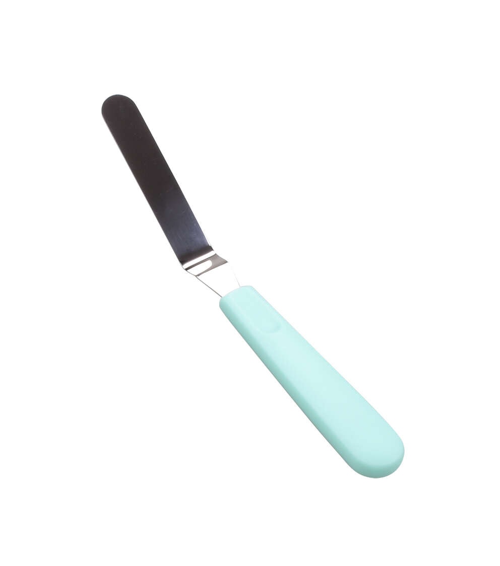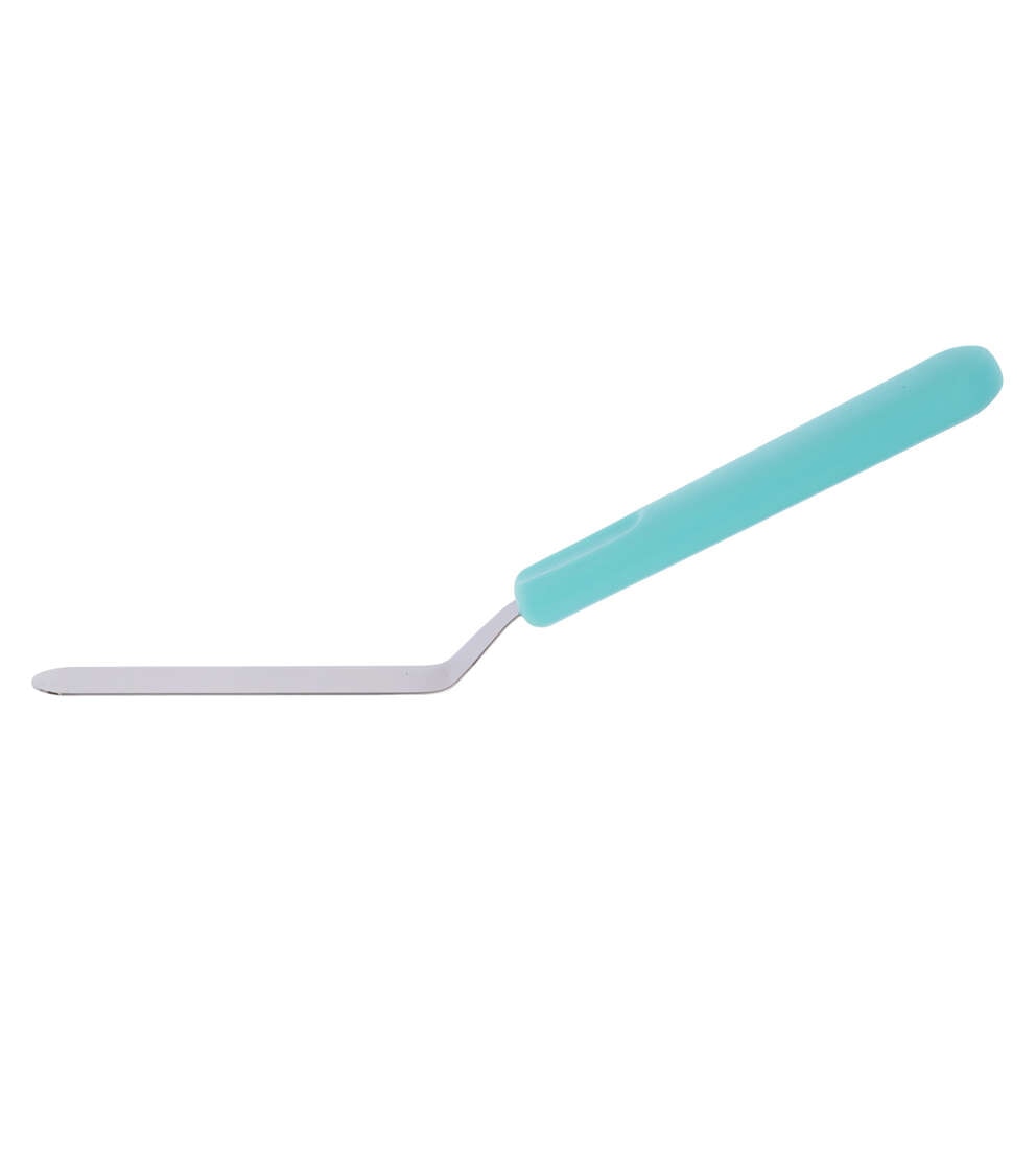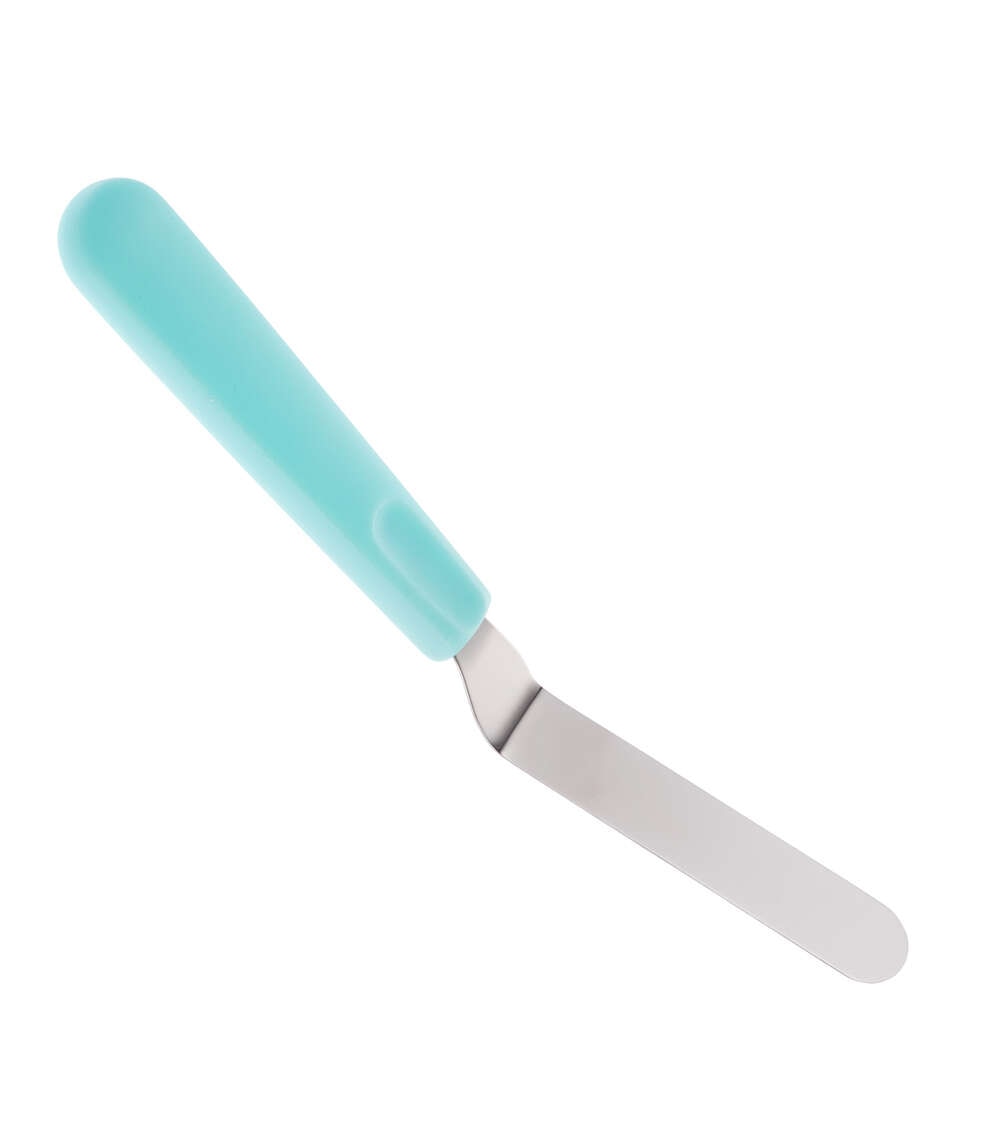 This angled icing spatula is a staple for bakers. Use it to spread and smooth icing without your fingers getting in the way. The flexible stainless steel blade offers ample control, and the sturdy plastic handle is contoured for comfort.