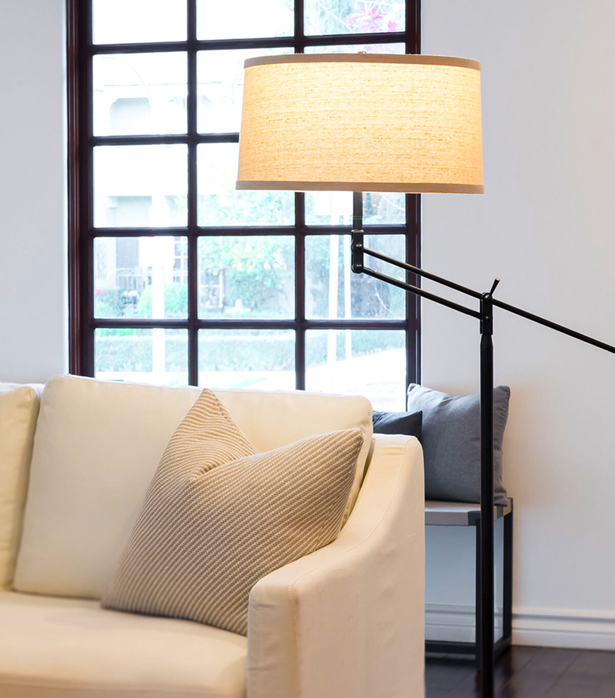 Brightech’s Ava is one of the most stylish and versatile lamps on the market. Position Ava’s light behind a couch or armchair and have friends start conversations on the stylish two-tone design and practical height adjusting arm. Brightech’s Ava allows you to adjust the height of this lamp up to a maximum of 5 feet tall. The arm has an outer reach of about 1 foot from the pole, and the adjustable hinge allows the lampshade to be positioned to any height between 45 inches and 61 inches from the ground. Perfect for reading, knitting, cross-stitching and other hobbies. Conveniently compatible with Alexa, Google Home Assistant, and Apple HomeKit, when purchased with a Smart Plug (sold separately).