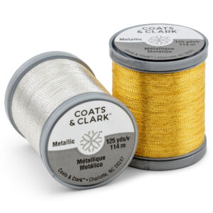 Make shiny decorative sewing designs on your fabrics with the Coats & Clark Metallic Thread 125 Yds. These 125-yard metallic threads are made of metallic polyester that will lend wonderful luster and shine to any project you create. Choose from many solid and variegated colors that can be used for conventional, long arm or overlock sewing. Use them with size 14 or 16 needles to make colorful, sparkling embroidery designs on your quilts, draperies, linens and apparel fabrics.
