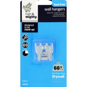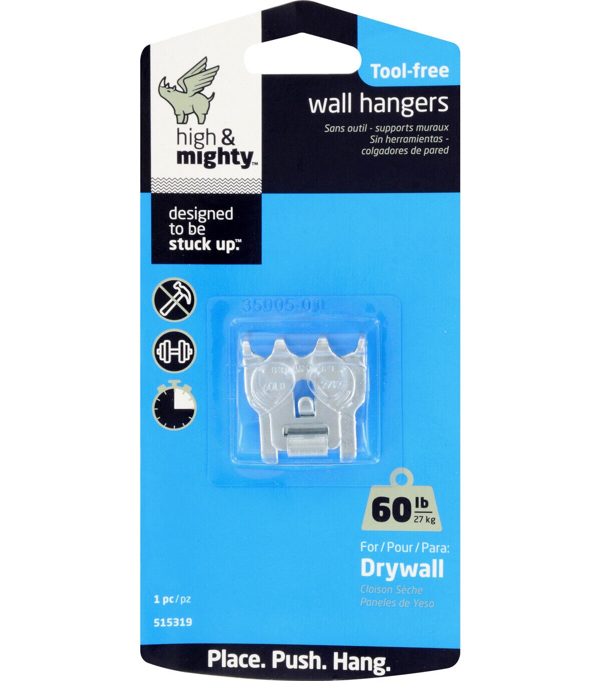 High & Mighty wall hangers are easy to install without a single tool-simply place, push, and hang. With just your thumbs, you can quickly go from inspiration to installation. The hangers come in a variety of weights so there’s a solution for anything you want to hang, no matter how big. Pictures, mirrors, wall decor, or even a gallery wall go up in seconds-and removing or replacing High & Mighty is easily done with a flathead screwdriver or something similar.