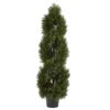 Standing 4 feet tall, this faux Double Pond Cypress plant features two twisting stalks of greenery to form a spiral topiary arrangement. Adorned with 1,036 leaves, this floor plant is handcrafted in fine detail to mimic a true topiary. Place at the front entryway to greet guests or atop an entryway table for added height. Leaves are UV Resistant, suitable for indoor or outdoor use.Silk trees are manufactured using synthetic materials, such as polyester material or plastic, and are well designed and constructed to be life-like in appearance. This item will need to be re-shaped when removed from the secure box to allow it to reach its fullest size. Your tree will look beautiful for years to come; simply wipe clean with a soft dry cloth when needed.