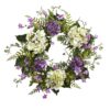 Adding color to any room or doorway it hangs on, this hydrangea berry wreath brings a dash of springtime whimsy to any occasion. Bright white flowers complement smaller selections of purple floral accents in a piece that is sure to bring joy for years to come. Coupled with a lively greens as an additional highlight, this “never needs care” hydrangea berry wreath is a breath of fresh air.Silk wreaths are manufactured using synthetic materials, such as polyester material or plastic, and are well designed and constructed to be life-like in appearance. This item will need to be re-shaped when removed from the secure box to allow it to reach its fullest size. Your wreath will look beautiful for years to come; simply wipe clean with a soft dry cloth when needed.