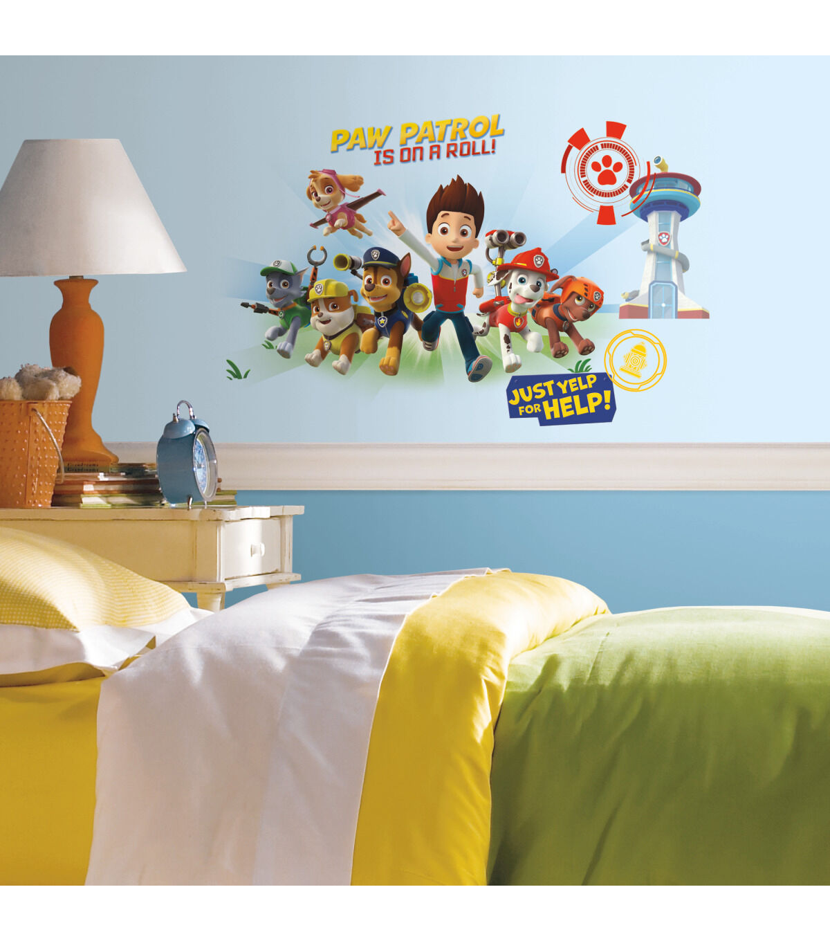 Help your favorite group of puppies protect the Adventure Bay Community with these Paw Patrol Wall Graphix Giant wall decals! Great wall decor for a preschooler’s bedroom or a Paw Patrol themed birthday party, these giant wall decals transform a room fast without putting in hard work. Easy to reposition and remove, simply peel the wall sticker from the high quality peel and stick backing and apply to a flat surface for the best results!