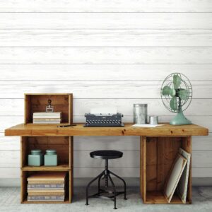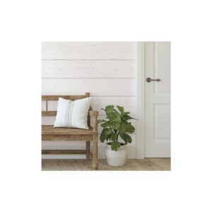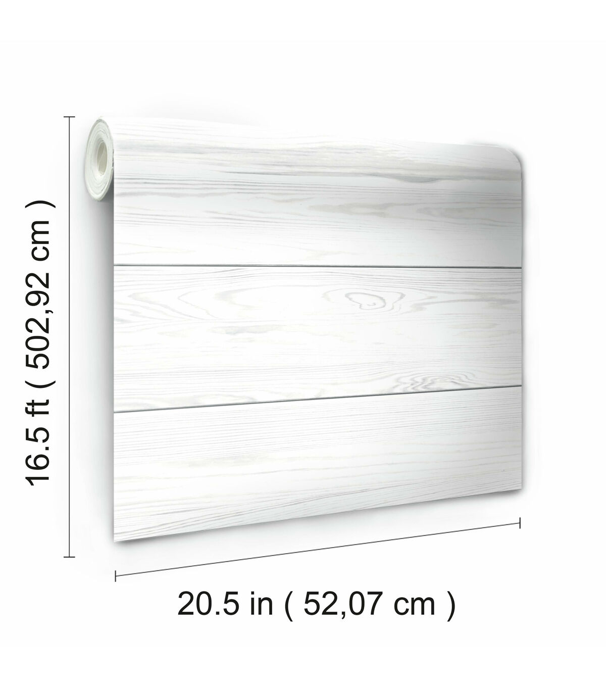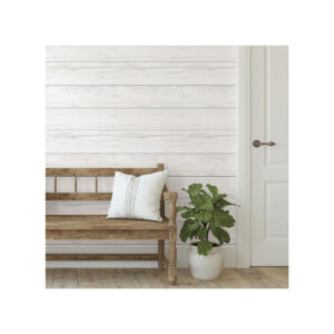Shiplap is now the wall standard for modern farmhouse décor. This clean wood horizontal planking for walls has been artistically captured in the Shiplap peel and stick wallpaper design from RoomMates. A light texture renders the shiplap a more realistic finish and the soft off white of the planks and taupe at the plank joints combine to make a clean statement that is easy to decorate around at a fraction of the cost of the real wood version. RoomMates peel and stick wallpapers are an easy and affordable way to decorate. Peel off the paper backing and smooth onto the wall, no additional adhesive required. When it’s time to redecorate, simply remove them effortlessly in full strips with no remaining sticky residue or damage to walls. 20.5 inches x 16.5 feet 20.5 Repeat. Straight Match. 28.18 square feet