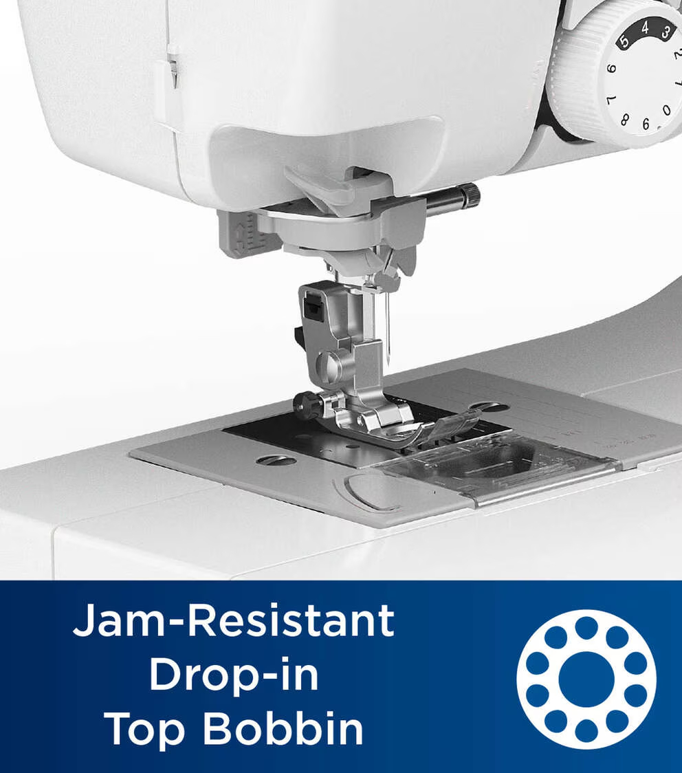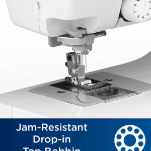 The drop-in bobbin ensures bobbins stay in place & provides even stitch quality.Sew Easy with Brother