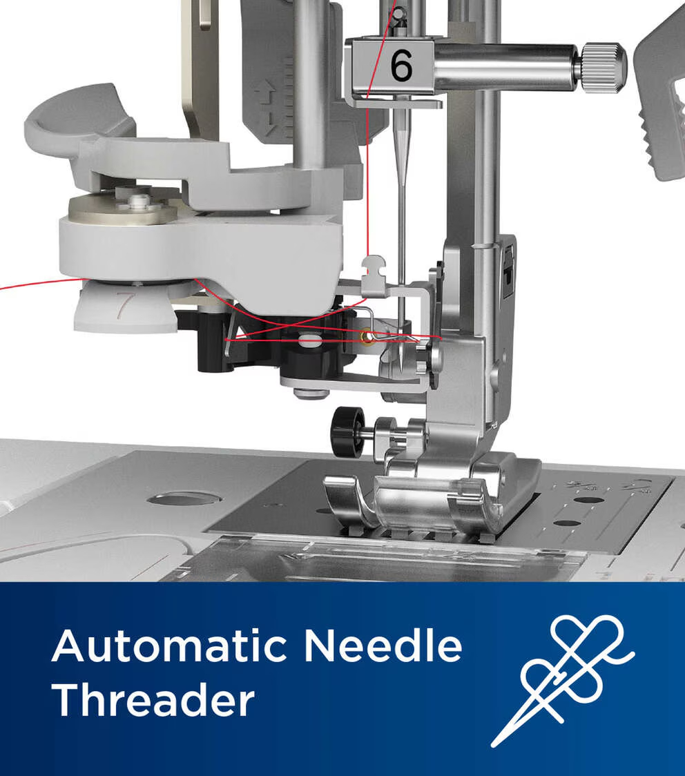 The improved & easier-to-use automatic needle threader reliably pushes the thread through the needle