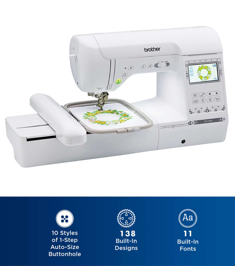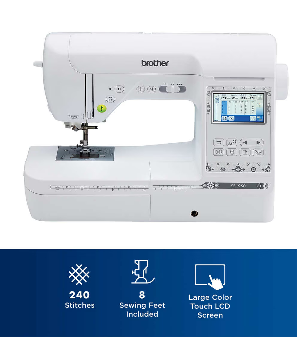 - 240 BUILT-IN SEWING STITCHES: With various built-in sewing stitches (240) and auto-size buttonholes (10), the SE1950 gives you plenty of options for your next project.