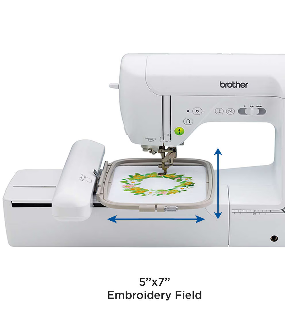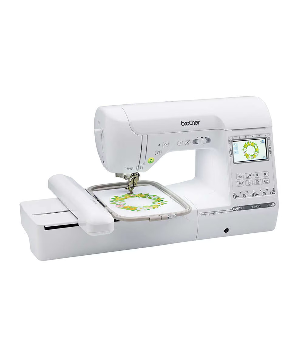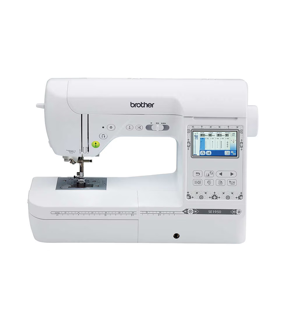 Bring your embroidery projects to life with the Brother SE1950. Create stunning embroidery designs with a generous 5 x7 embroidery field and view them on the large 3.2 LCD color touch display screen. Choose from over 100 built-in embroidery designs or import your own from iBroidery.com or other sources. This combination machine offers the ultimate sewing and embroidery experience. Have an idea you want to create? Choose from over 200 built-in sewing stitches and monogram or personalize your project with the 11 built-in fonts. The exceptional feed system allows for smooth fabric feeding and makes sewing a breeze. The user-friendly My Custom Stitch feature allows you to your own custom sewing stitches and save them to your machine! Change colors, combine designs and more – the options are endless SE1950 combination sewing and embroidery machine!
