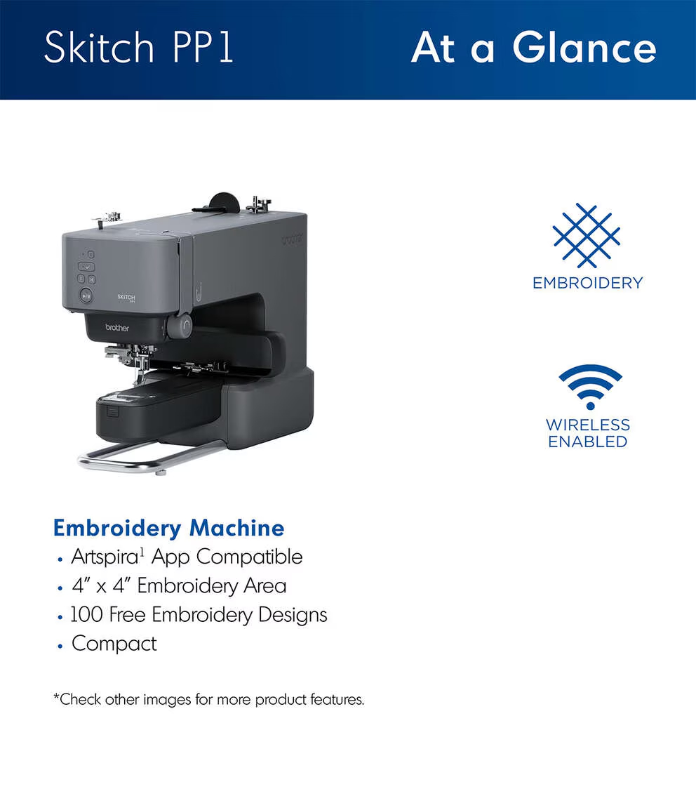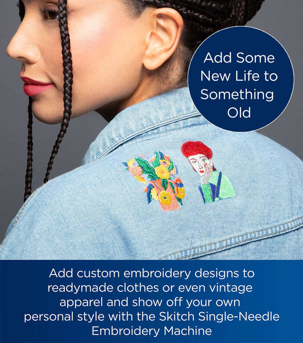 - A new way to embroider: New to embroidery? The Skitch Single-Needle Embroidery Machine is a great way to start your embroidery journey.