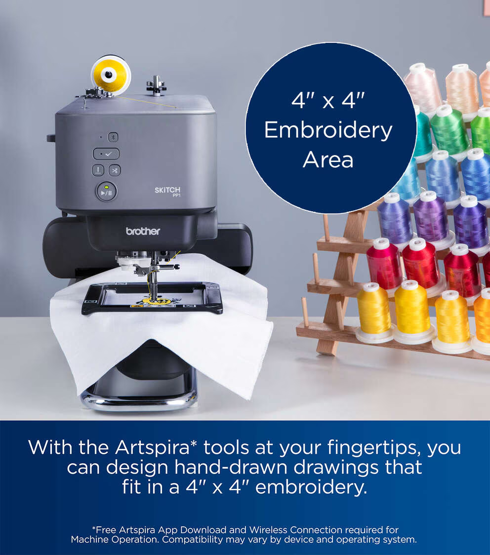 - Small footprint for all your big ideas: The Skitch Single-Needle Embroidery Machine will fit nicely in any makeshift craft room and is always ready for your next great idea.