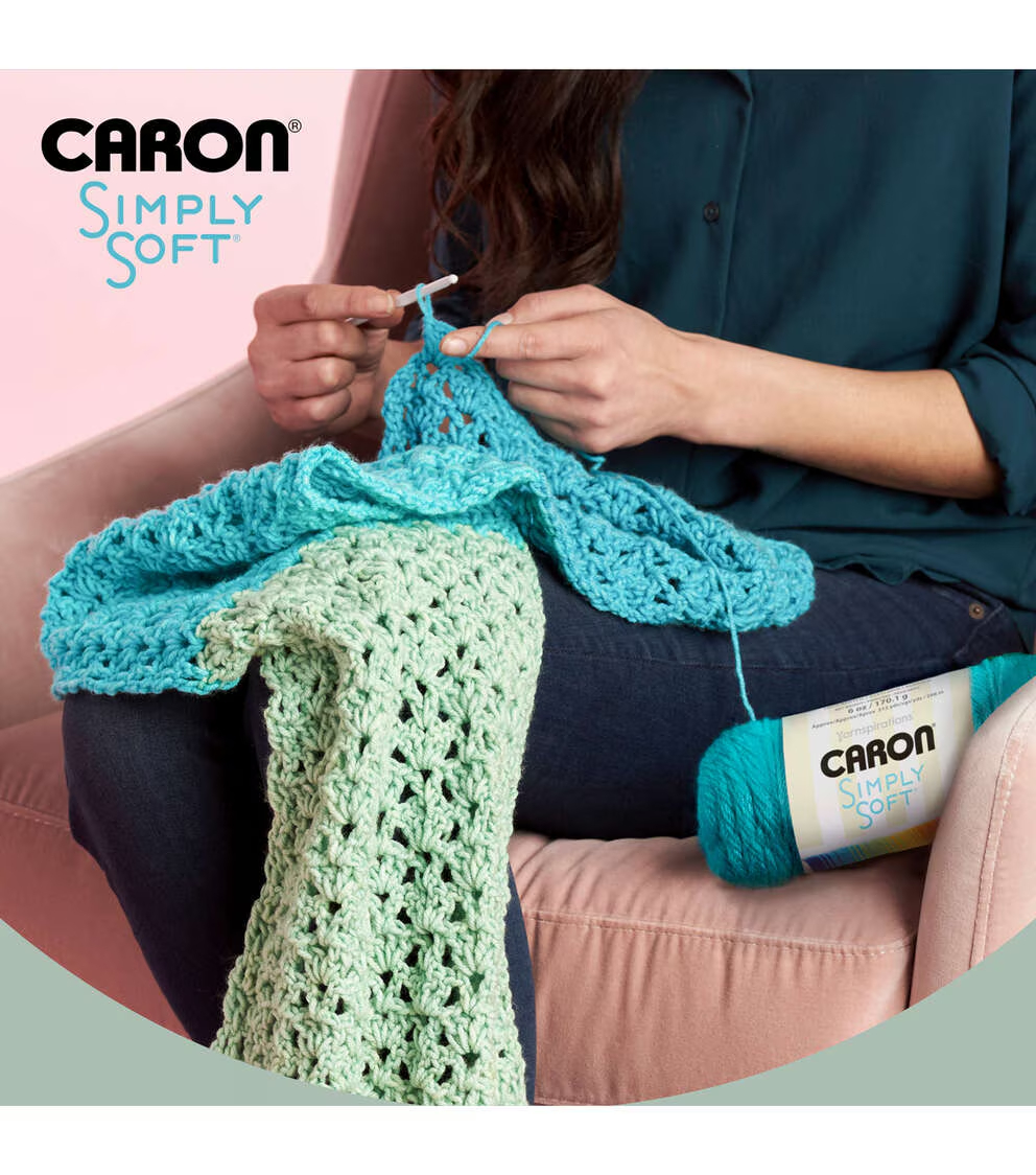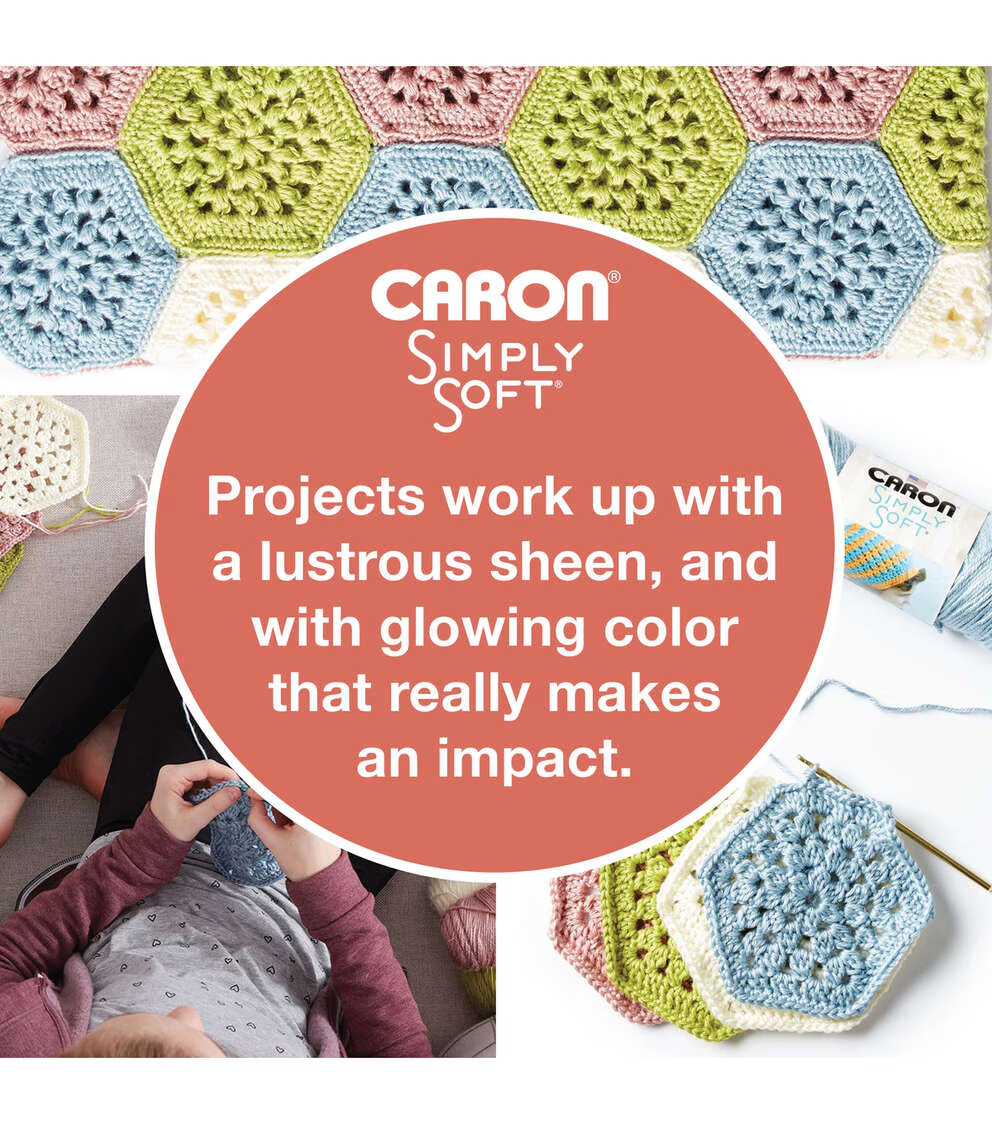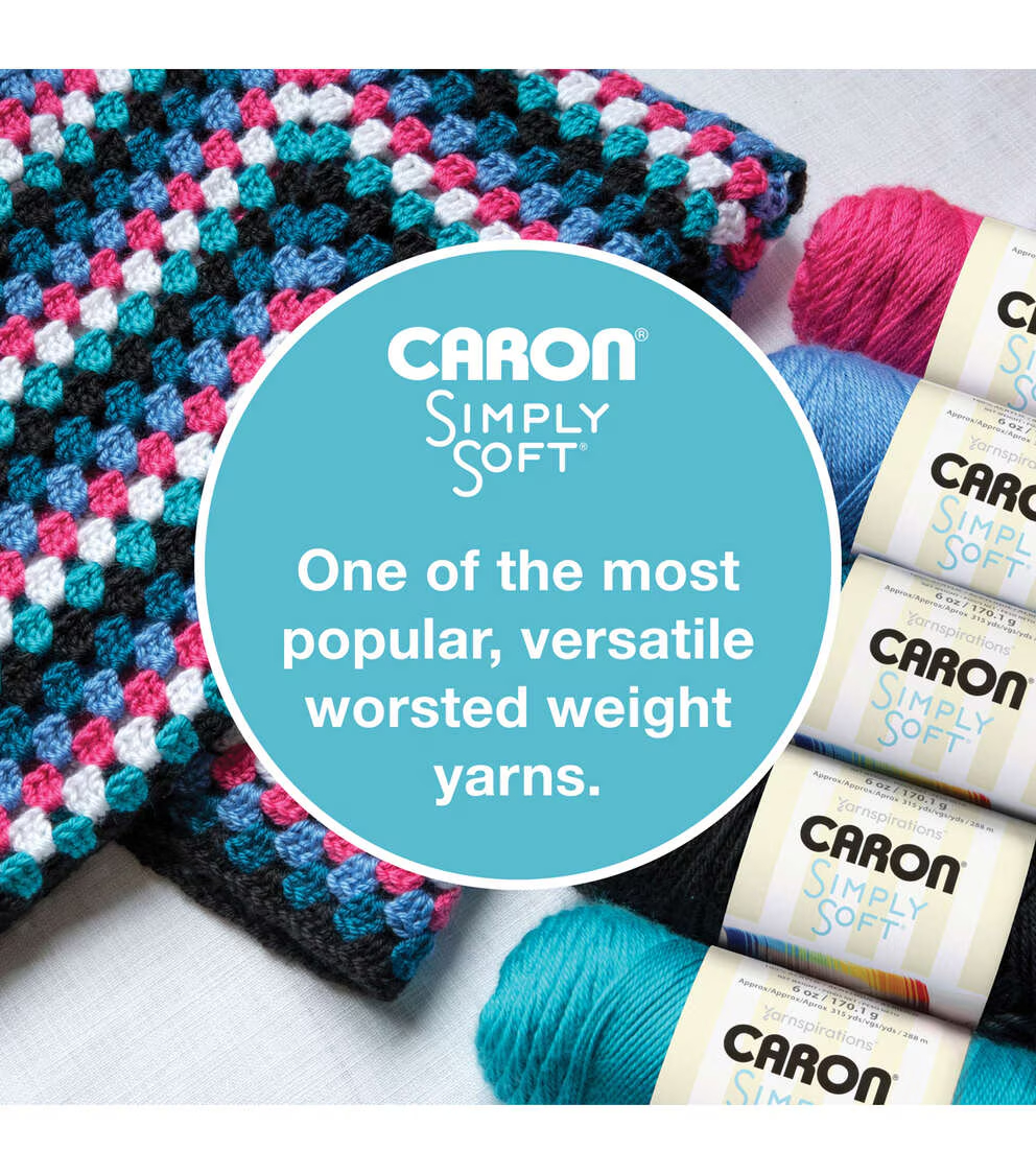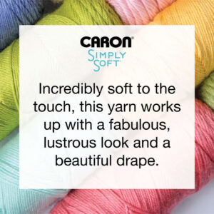 Caron Simply Soft yarn is one of the most popular, versatile worsted weight yarns. Incredibly soft to the touch, this yarn is perfect from a variety of projects from baby to fashion to home decor. Simply Soft comes in an extensive array of colors, from neutrals, to pastels and brights, as well as vibrant neons – the perfect shade for every project! With a unique sheen, this yarn works up with a fabulous, lustrous look, with a beautiful drape. Conveniently machine washable and dryable for easy care.Beautiful luster and sheen