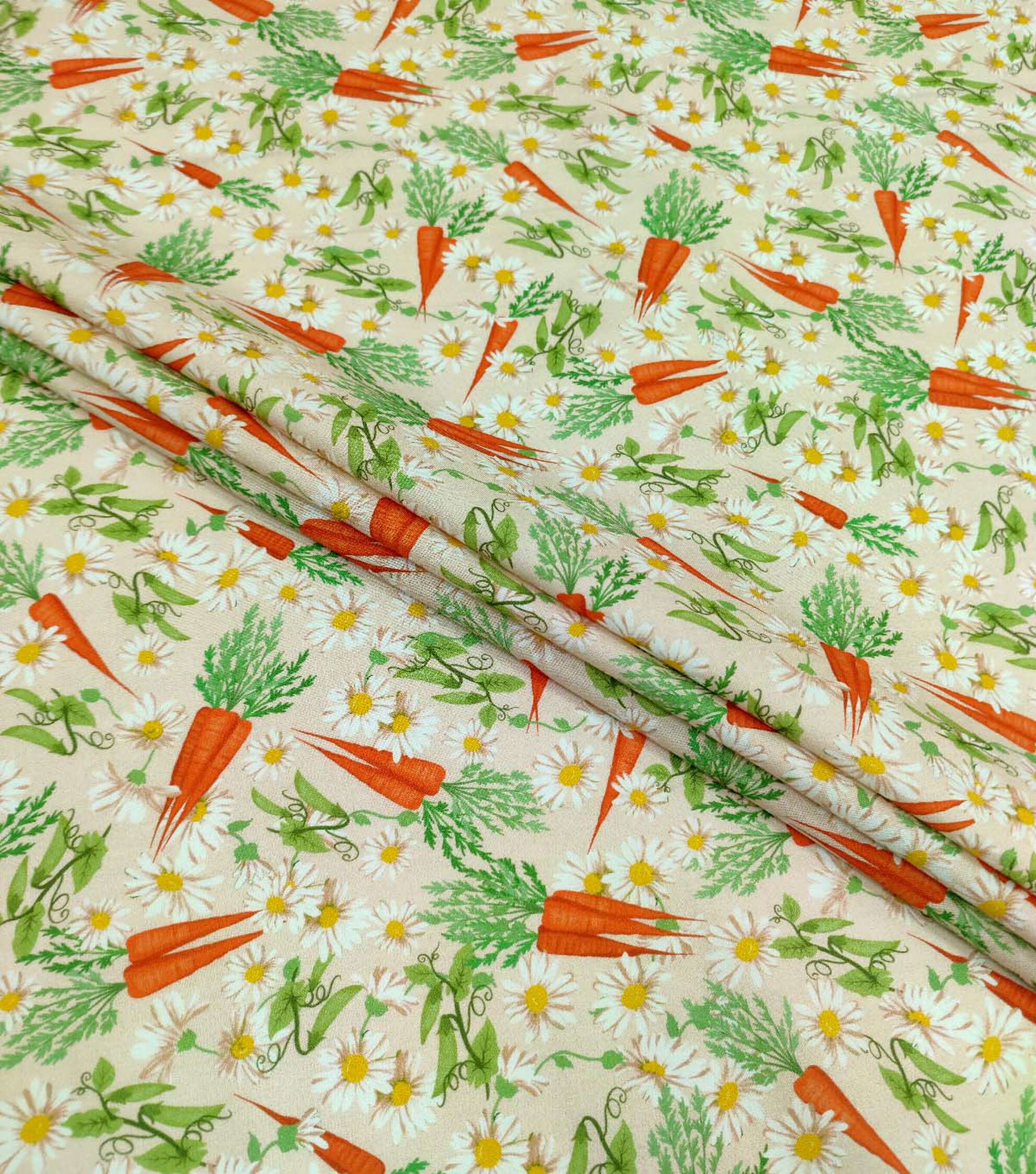 Get Ready for Easter with our Carrots & Daisies on Green Easter Cotton Fabric