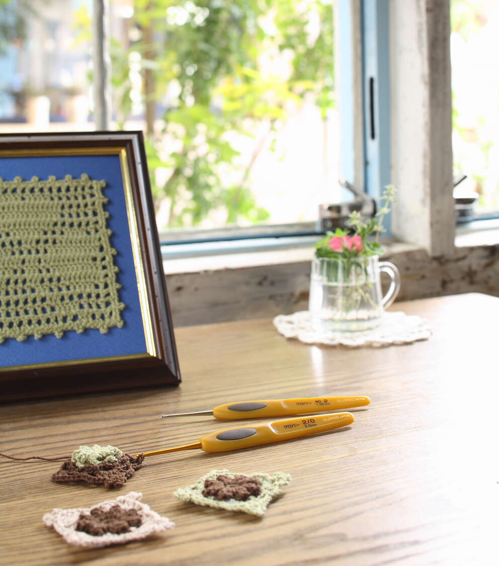 Clover Soft Touch Crochet Hooks have an optimal shape for smooth crochet work, and a special handle that is ergonomically correct and has an oval shaped soft rubber cushion for comfort. Crochet hook is made of aluminum; handle is made of ABS resin.