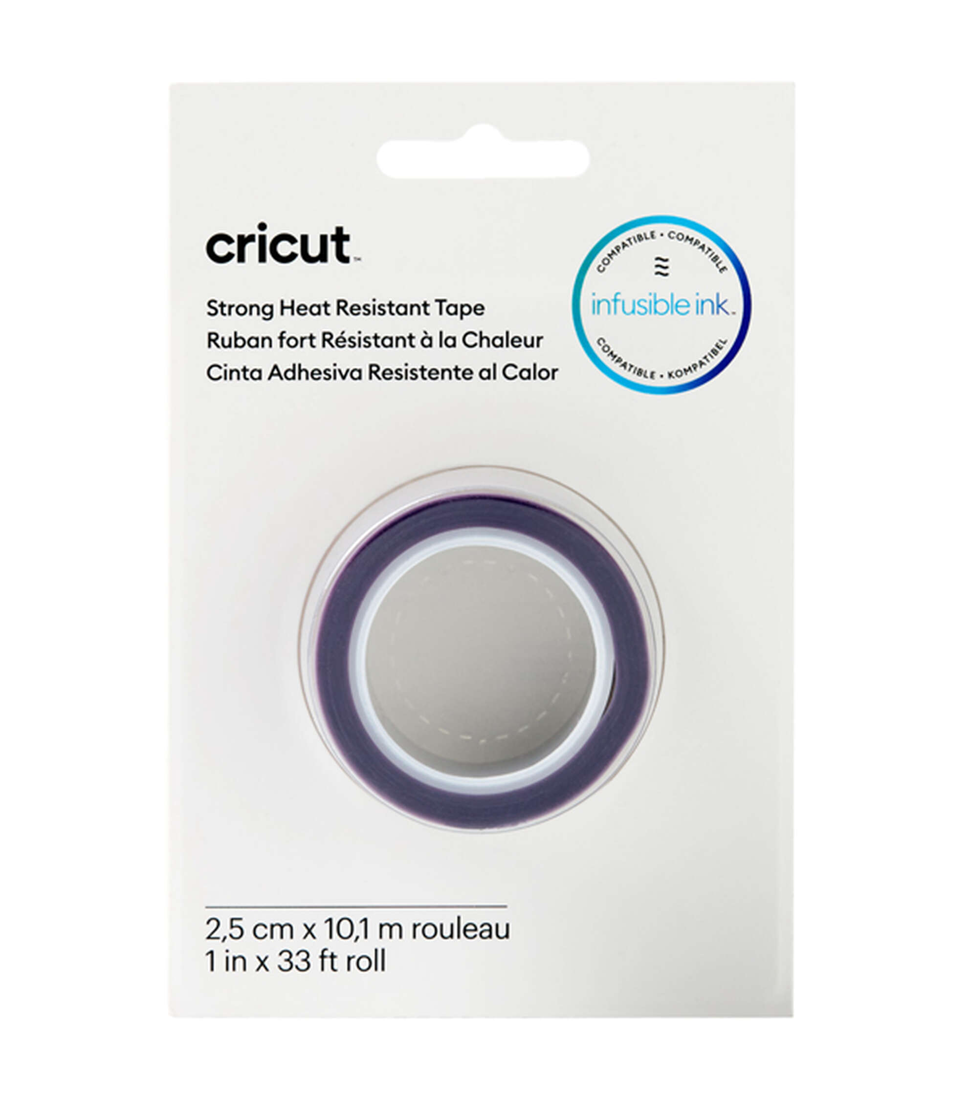 With an extra-strength adhesive, Cricut Strong Heat Resistant Tape holds your designs on uneven, unusual, or curved surfaces during the heat transfer process. It withstands temperatures up to 400ºF (205ºC) and is ideal for applying iron-on (HTV), Infusible Ink & sublimation products to sweatshirts, stuffed animals, ball caps & more. Excellent with Cricut heat presses, a household iron, or any heat press of your choice.
