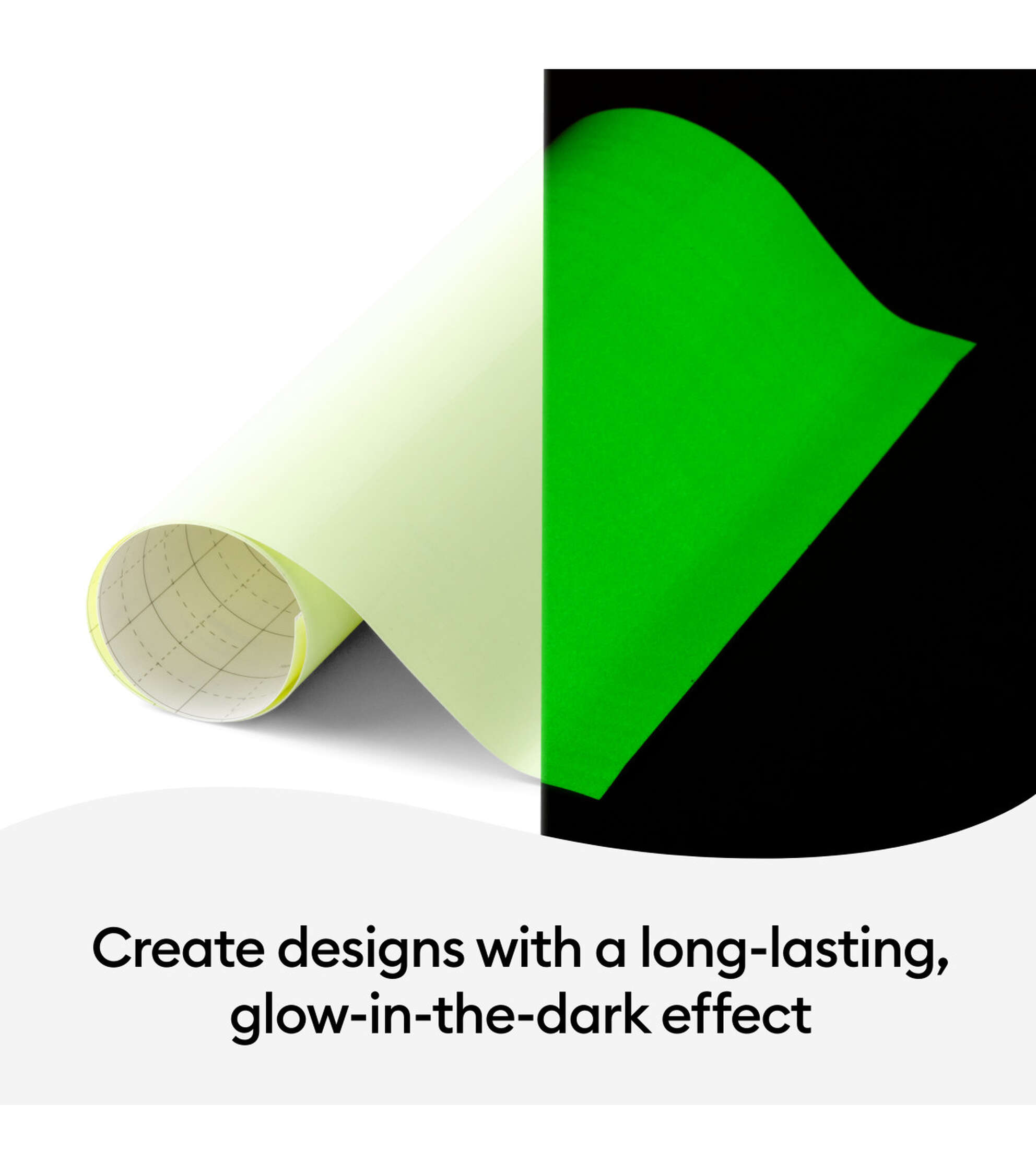 Get your glow on with Cricut Glow-in-the-Dark Vinyl. Add a luminous touch to almost anything — from walls to decor, accessories and beyond. Enjoy effortless weeding and awe-inspiring results. All you need to do is cut your design and apply it your desired surface — then turn off the lights, sit back, and bask in the glow. With removable vinyl you customize without commitment as the material removes without residue for up to 2 years. For all Cricut cutting machines.