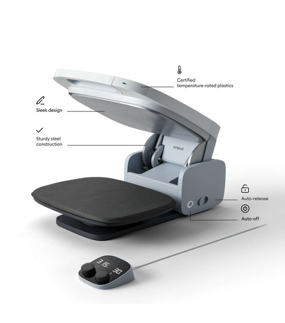 - Reaches temperatures up to 400 °F (205 °C) for iron-on (HTV), Infusible Ink & sublimation projects