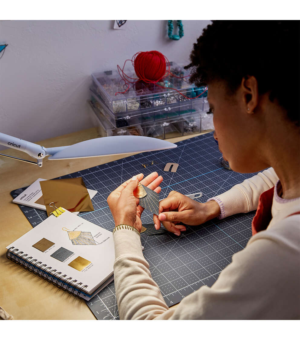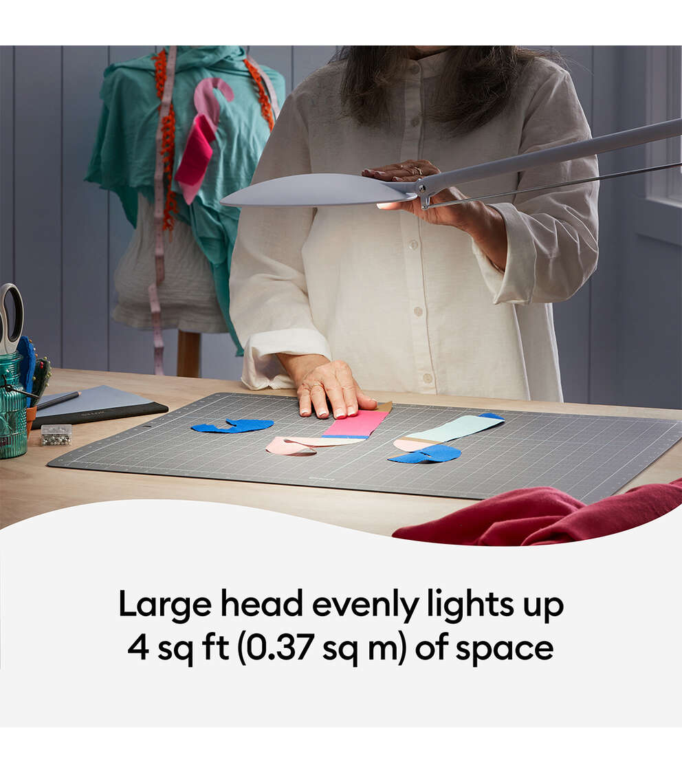 See your projects in a whole new light with Cricut Bright 360, the ultimate LED table lamp. Its large, broad head evenly lights up your entire workspace. With a gentle push of the hand, the lamp pivots, rotates, and easily glides into the just-right position for every craft. Whether you’re working on a delicate accent piece or searching for the perfect matching shade, you’ll see colors and details with exceptional clarity. A high 95 CRI (Color Rendering Index) means your colors will appear more accurately than with a traditional bulb. Use the sleek sliders to adjust brightness (up to 1500 lux) as well as light color temperature (warm to cool white) to cast ideal light in any space. Comfortably see every detail with less glare, hotspots, and eye strain. From mid-craft to final project photos, Cricut Bright 360 shines light your way.