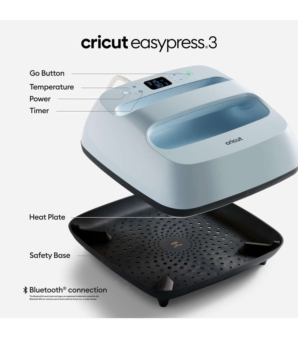 Now with Bluetooth wireless technology built in, the world’s most beloved heat press just got smarter. Simply connect Cricut EasyPress 3 to the Cricut Heat app to send precise time & temperature settings and get step-by-step guidance for every project. With super-fast heat-up up to 400℉ (205°C) and a ceramic-coated heat plate, Cricut EasyPress 3 combines the speed of a heat press with the convenience of an iron. Includes an insulated safety base and auto-off feature so you can press with peace of mind. Cricut EasyPress 3 is lightweight, portable, and easy to store. Compatible with Infusible Ink products and most brands of iron-on (HTV). A perfect companion to Cricut cutting machines. Product will not function until activated with Cricut Heat app and compatible internet-connected mobile device.