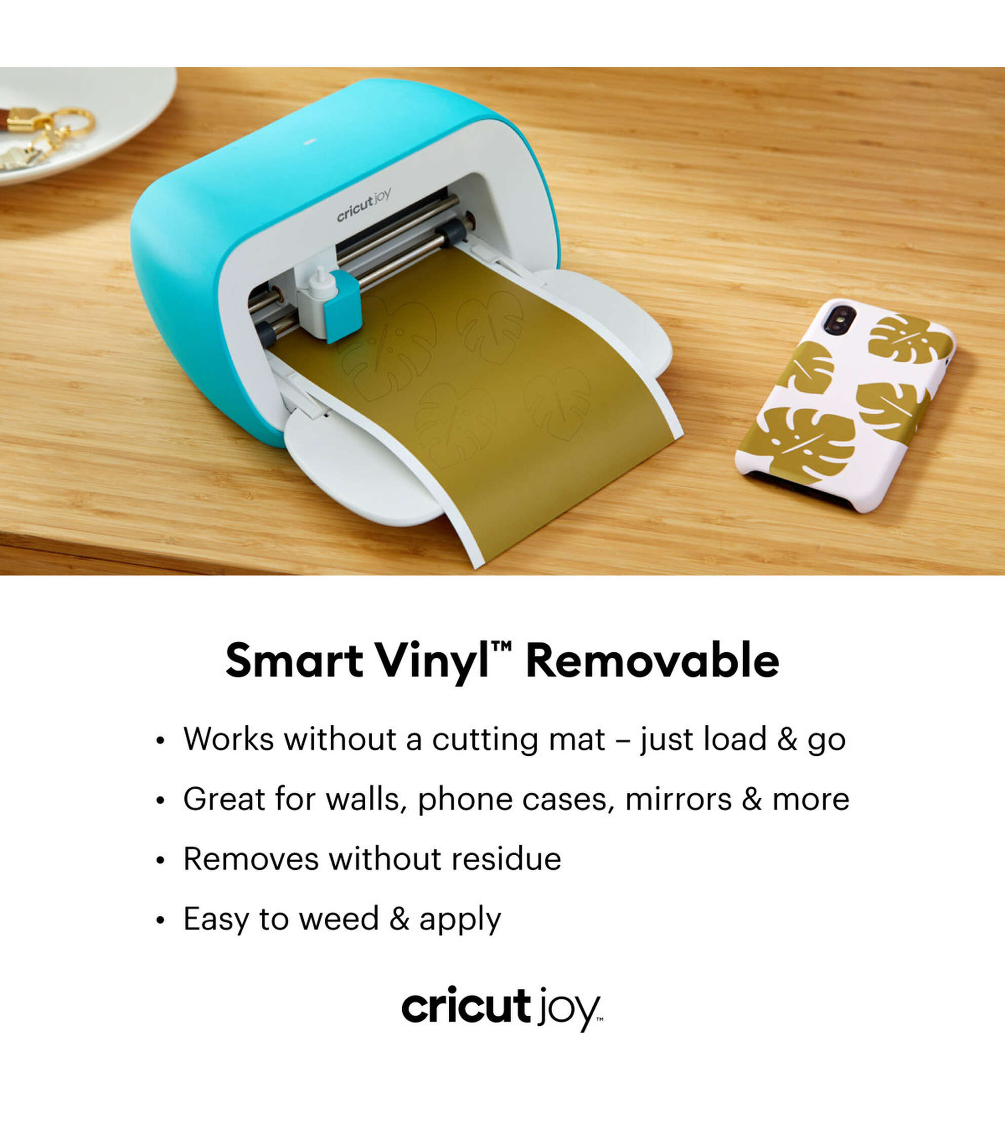 Personalize a little or a lot. Make more in less time with Cricut Joy and 10ft Smart Materials. There’s nothing to prep. This clever crafting material works without a cutting mat, so you can just load and go. So it will be no biggie to create a quick, removable decal for your laptop or make a statement for your wall to bring the room together. Apply designs to almost any surface. For ultimate flexibility, this vinyl removes without residue. Whether you’re all about tiny touches or shouting from the rooftops, you’ve got this. For use with Cricut Joy.