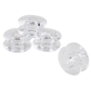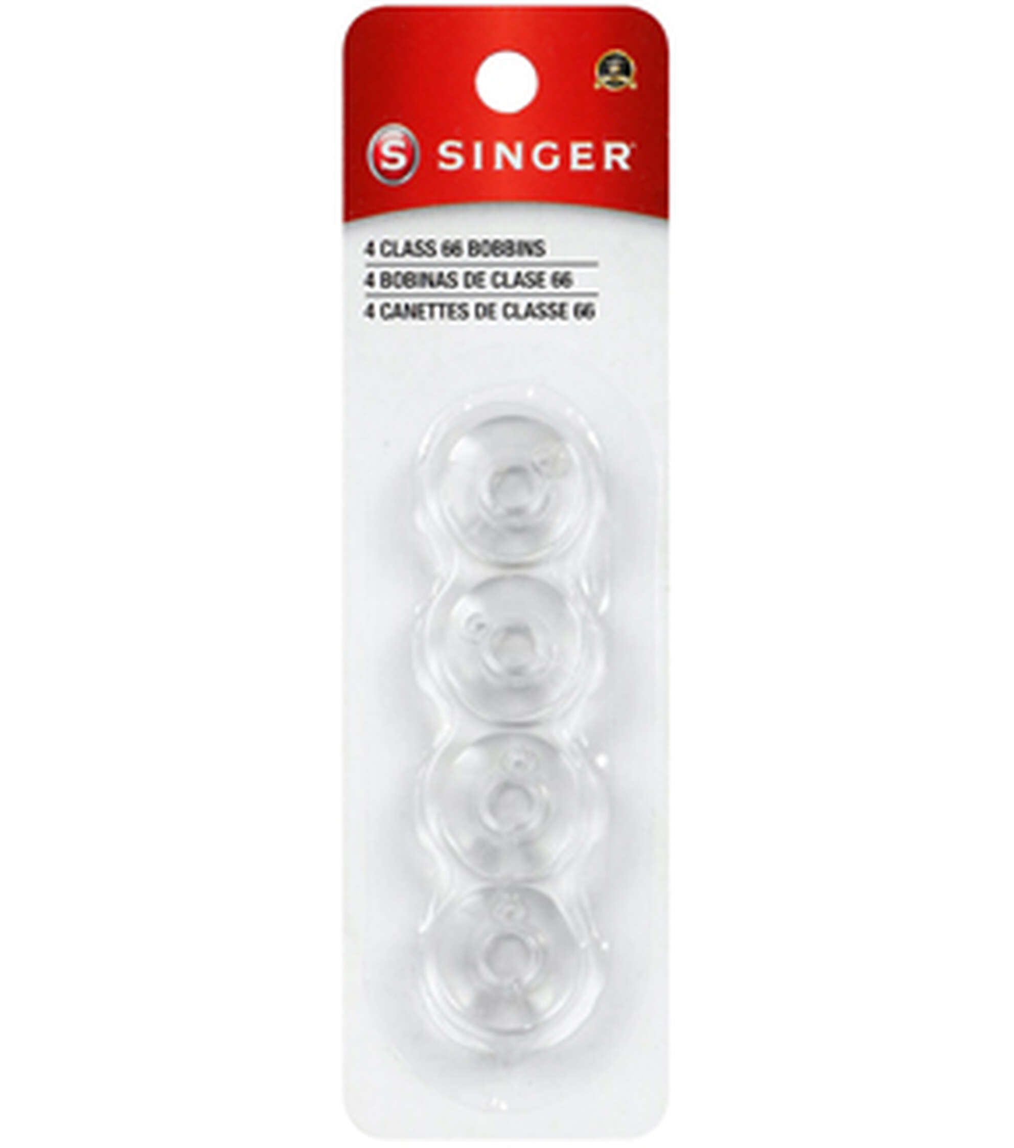 The Singer Plastic Class 66 Bobbins serve as replacements for many SINGER sewing machine models as well as other brands with drop-in bobbins. This set includes four Class 66 plastic bobbins. Use the bobbins beneath the needle plate in automatic sewing machines to wind the thread for your embroidery projects. Never add a thread to a partially wound bobbin, as it may be uneven and cause the thread to tangle or break. Refer to your machine’s manual to ensure the correct bobbin size. These bobbins are not compatible with Bernina, Elna, Husqvarna, Viking, Pfaff, Janome or New Home.