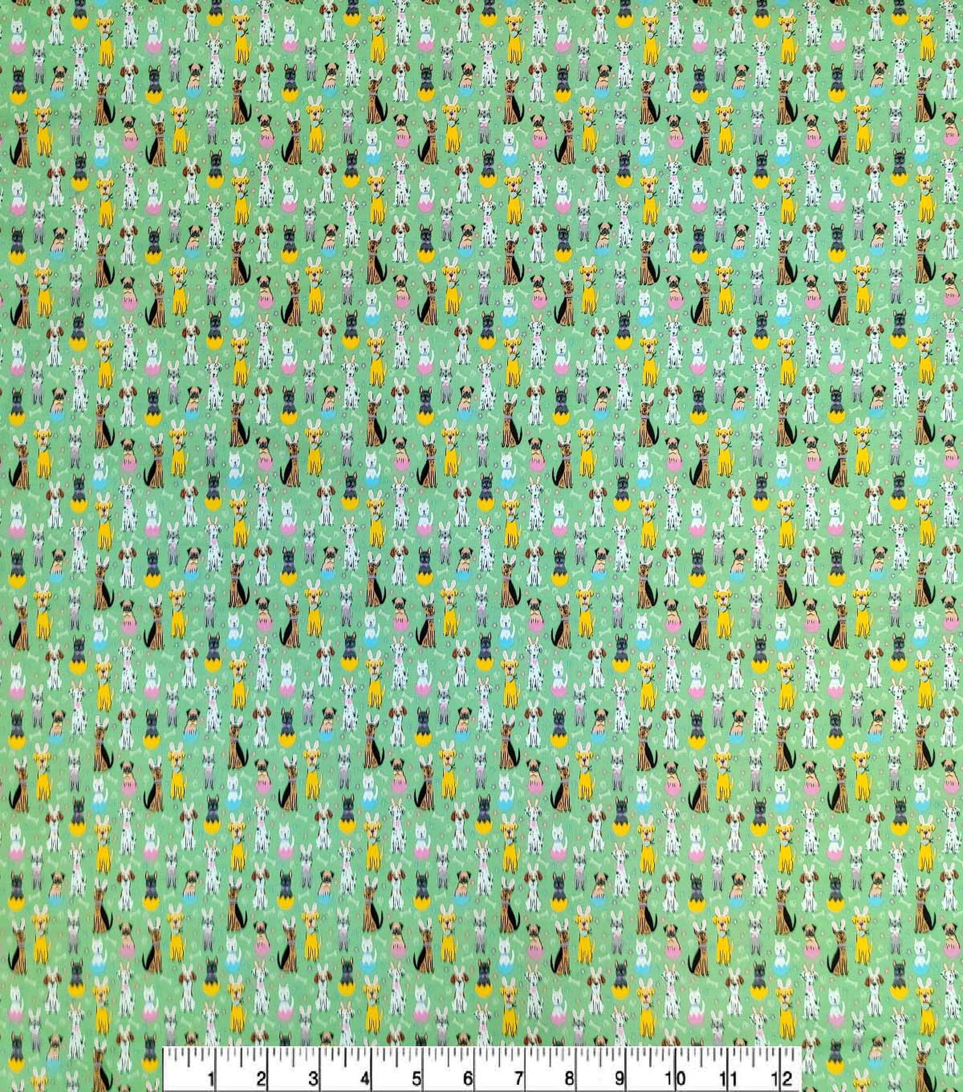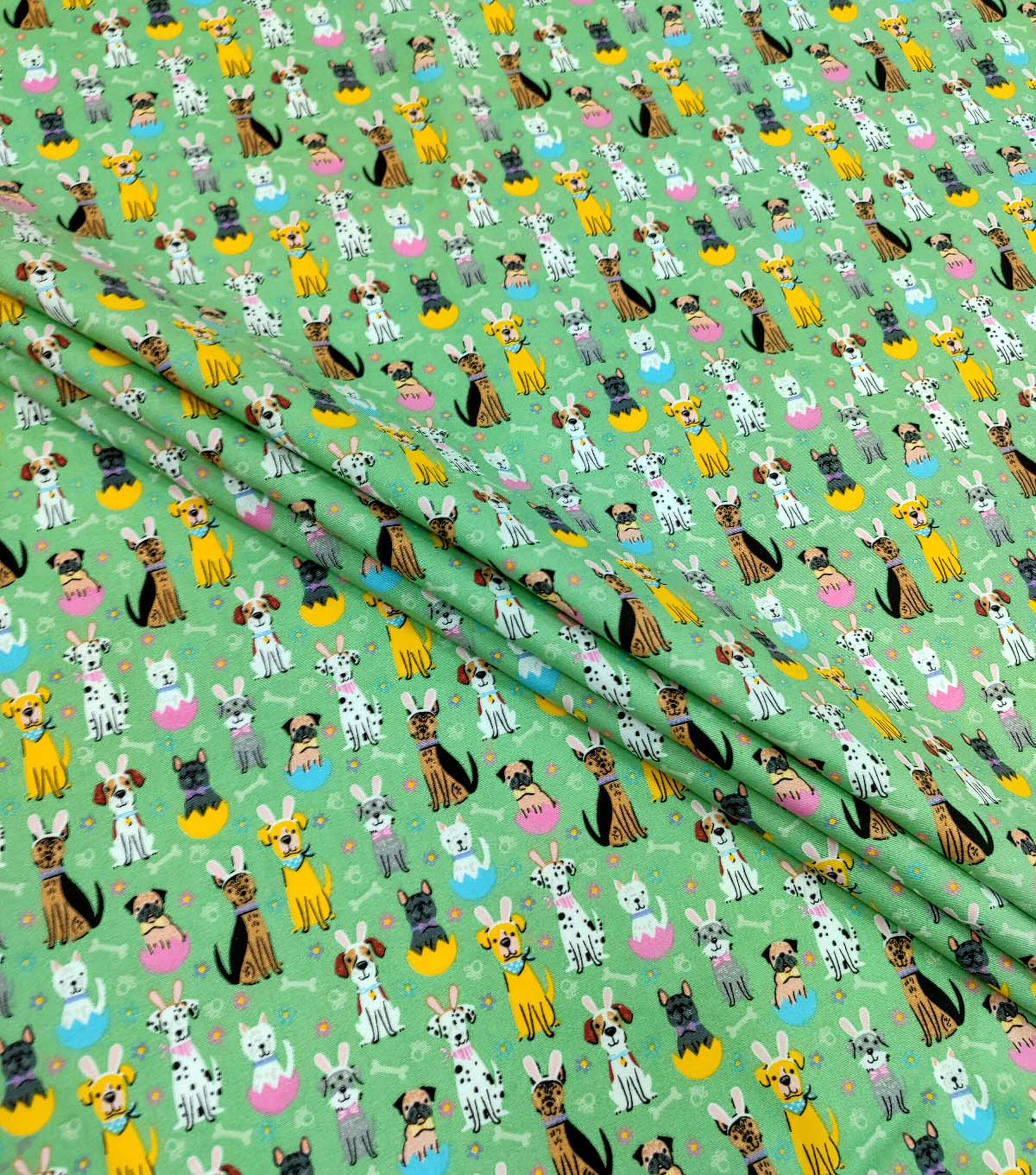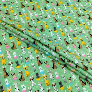 Get Ready for Easter with Our Adorable Easter Doggies on Green Easter Cotton Fabric