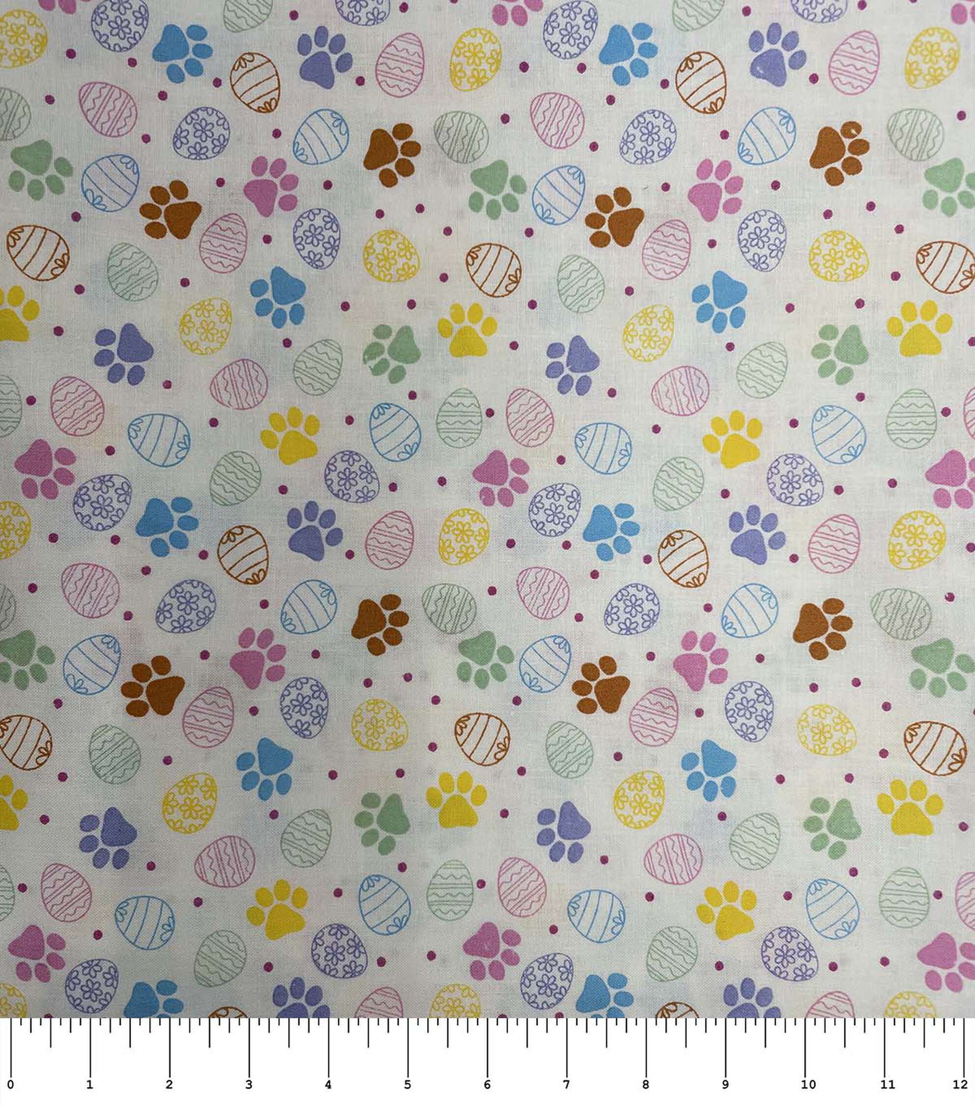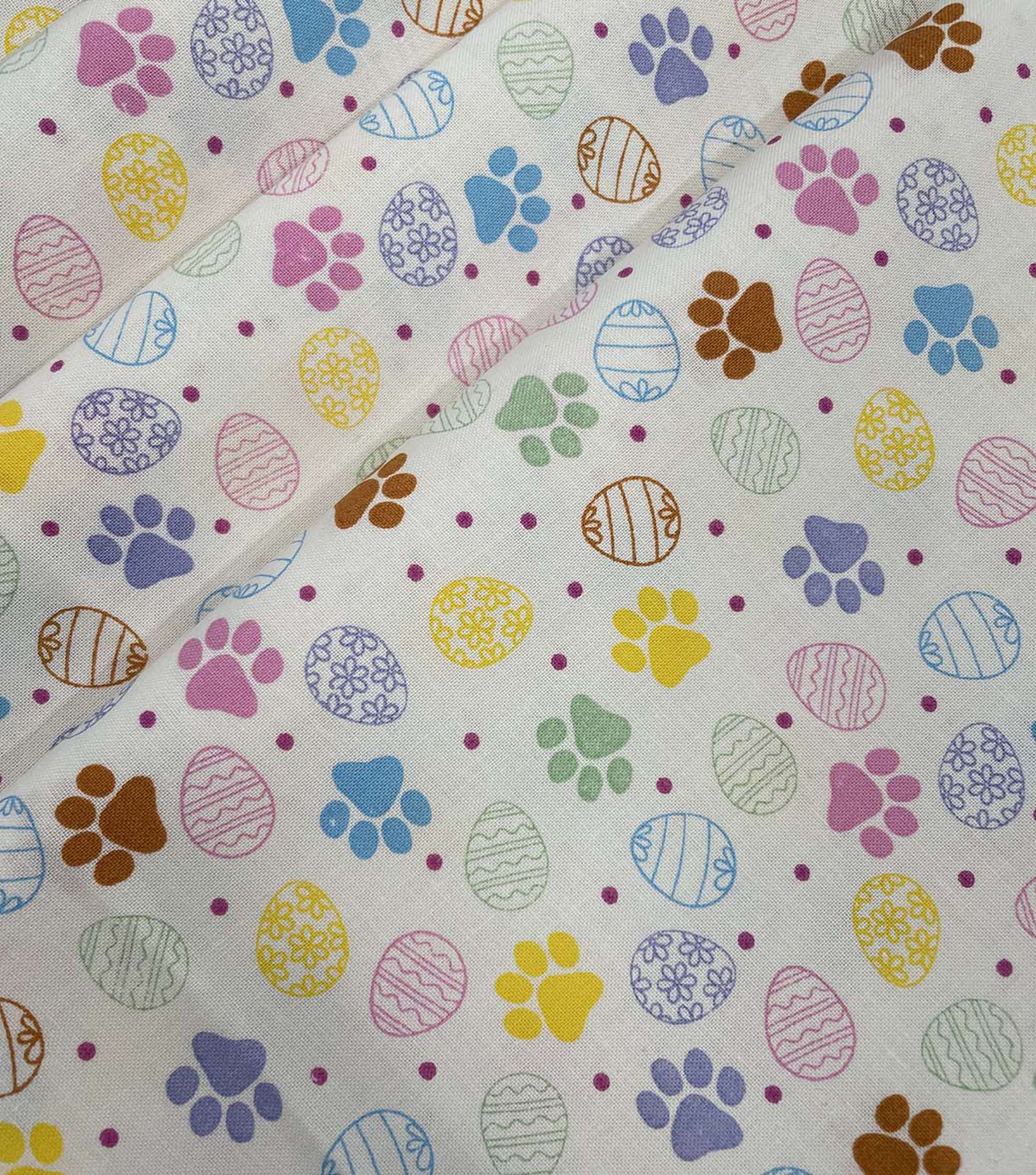Get Ready for Easter with this Adorable Paw Prints & Eggs on White Fabric!