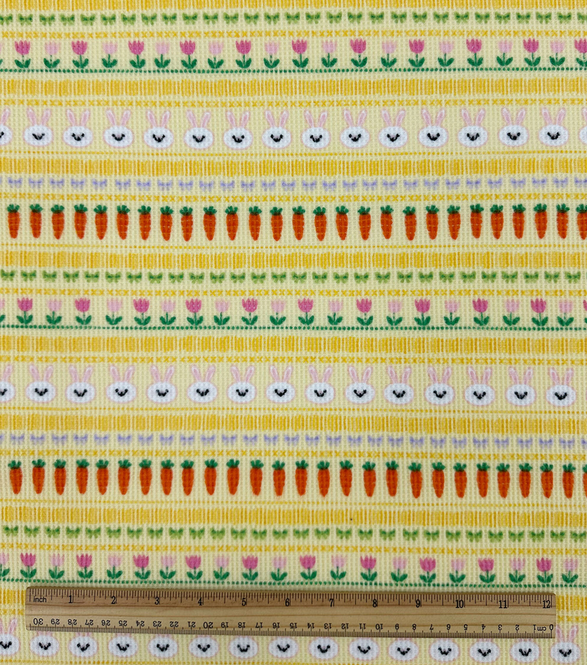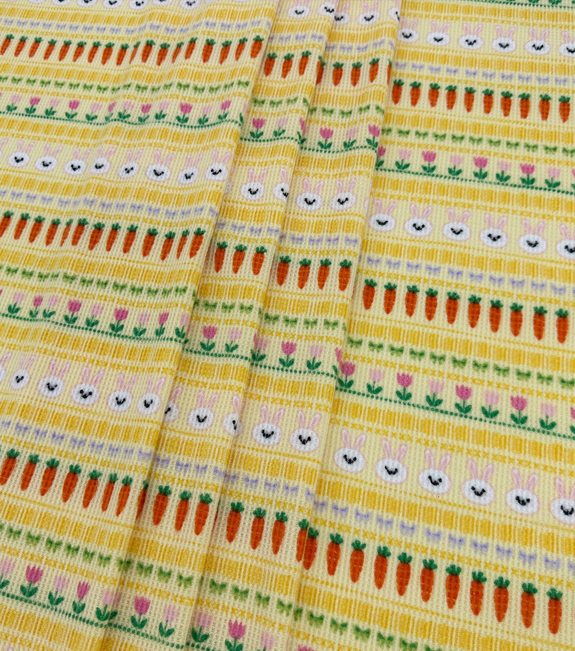 Easter Yellow Bunny Fair Isle Waffle Knit Fabric by POP!