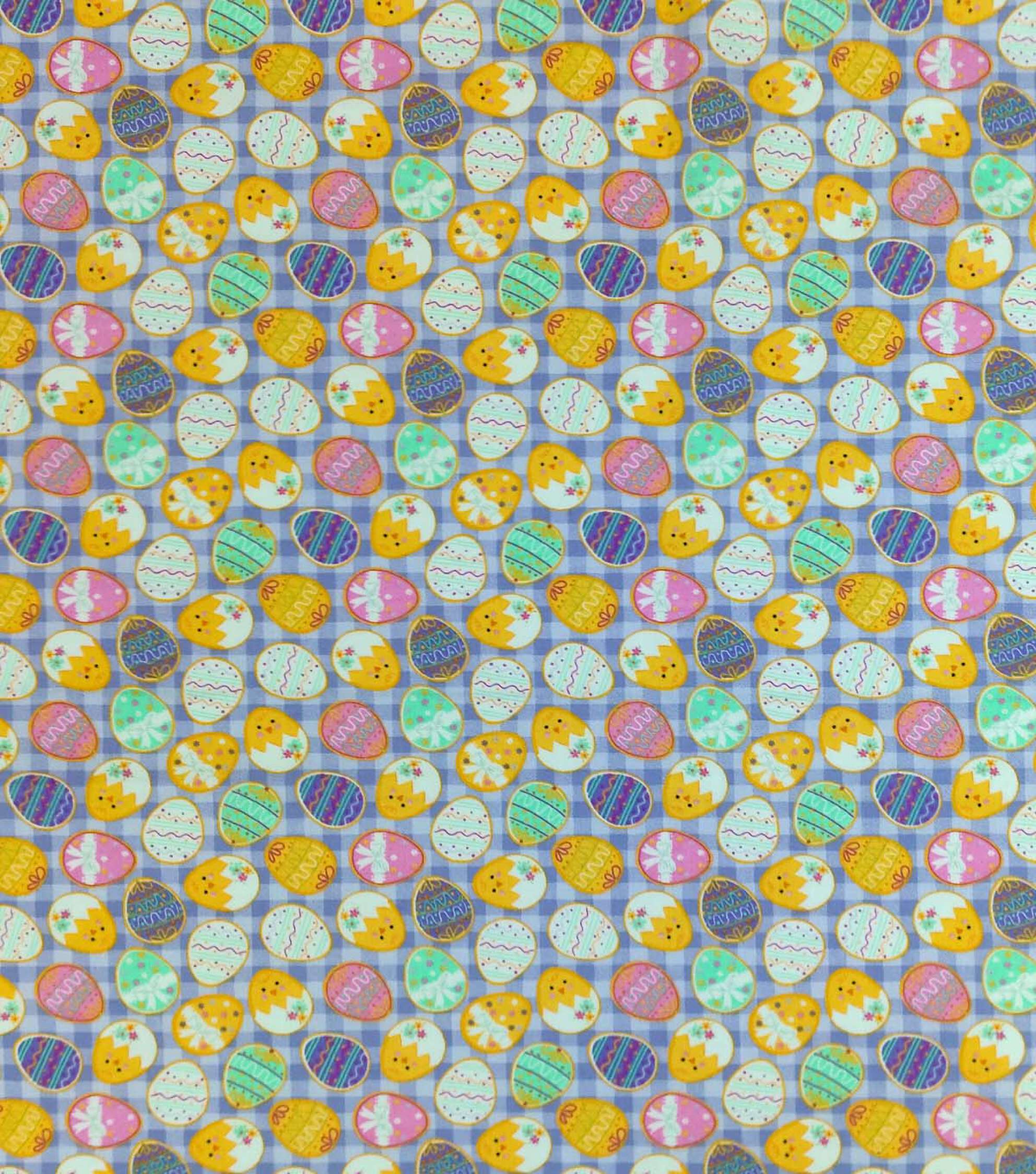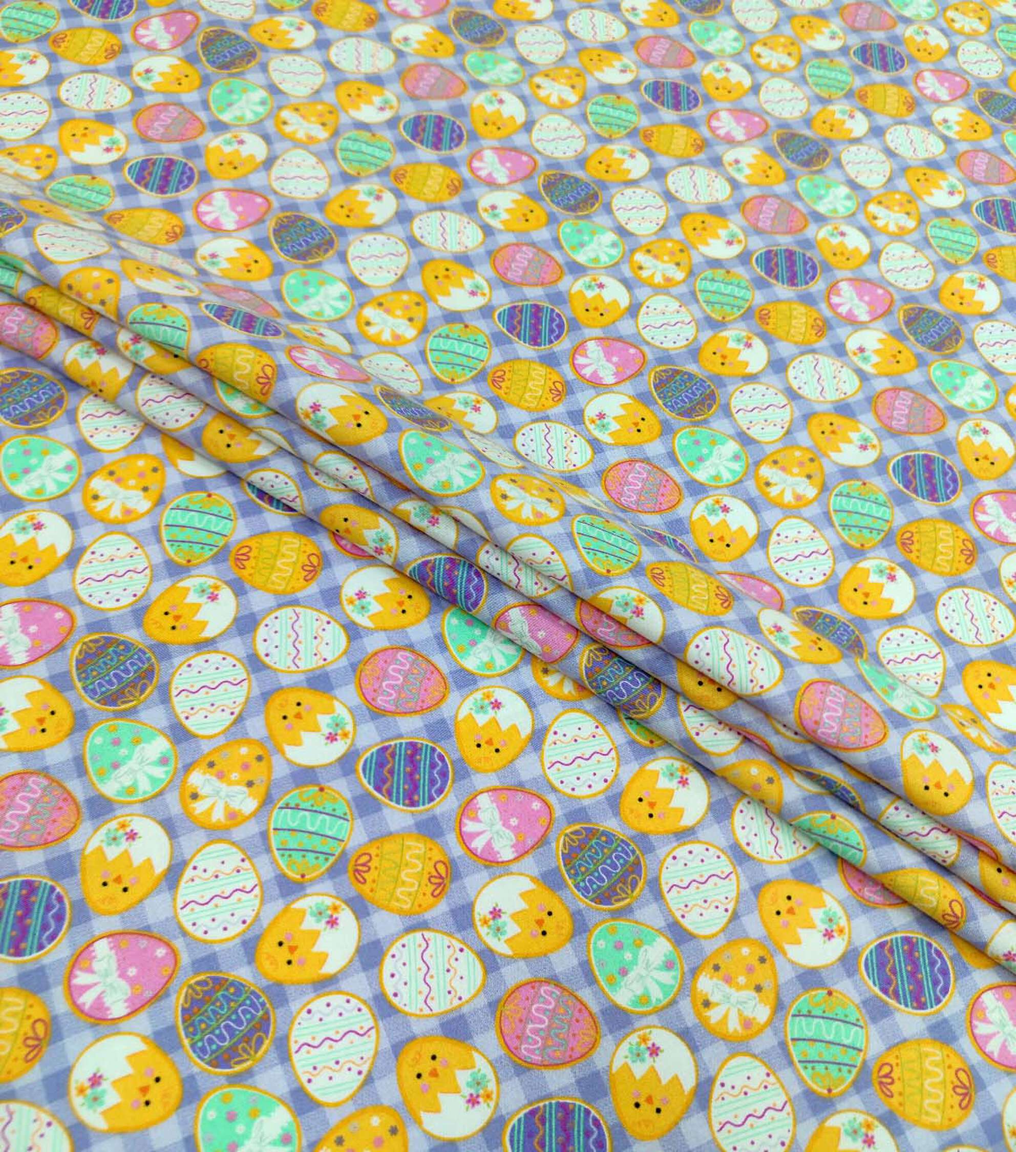 Make your Easter crafts and decorations stand out with our Eggs & Chick Cookies on Purple Easter Cotton Fabric. This fabric is perfect for creating quilts, apparel, Easter decor, Easter basket liners, table runners, placemats, and napkins. The colorful design of eggs and chick cookies on a purple background will add a festive touch to your projects.