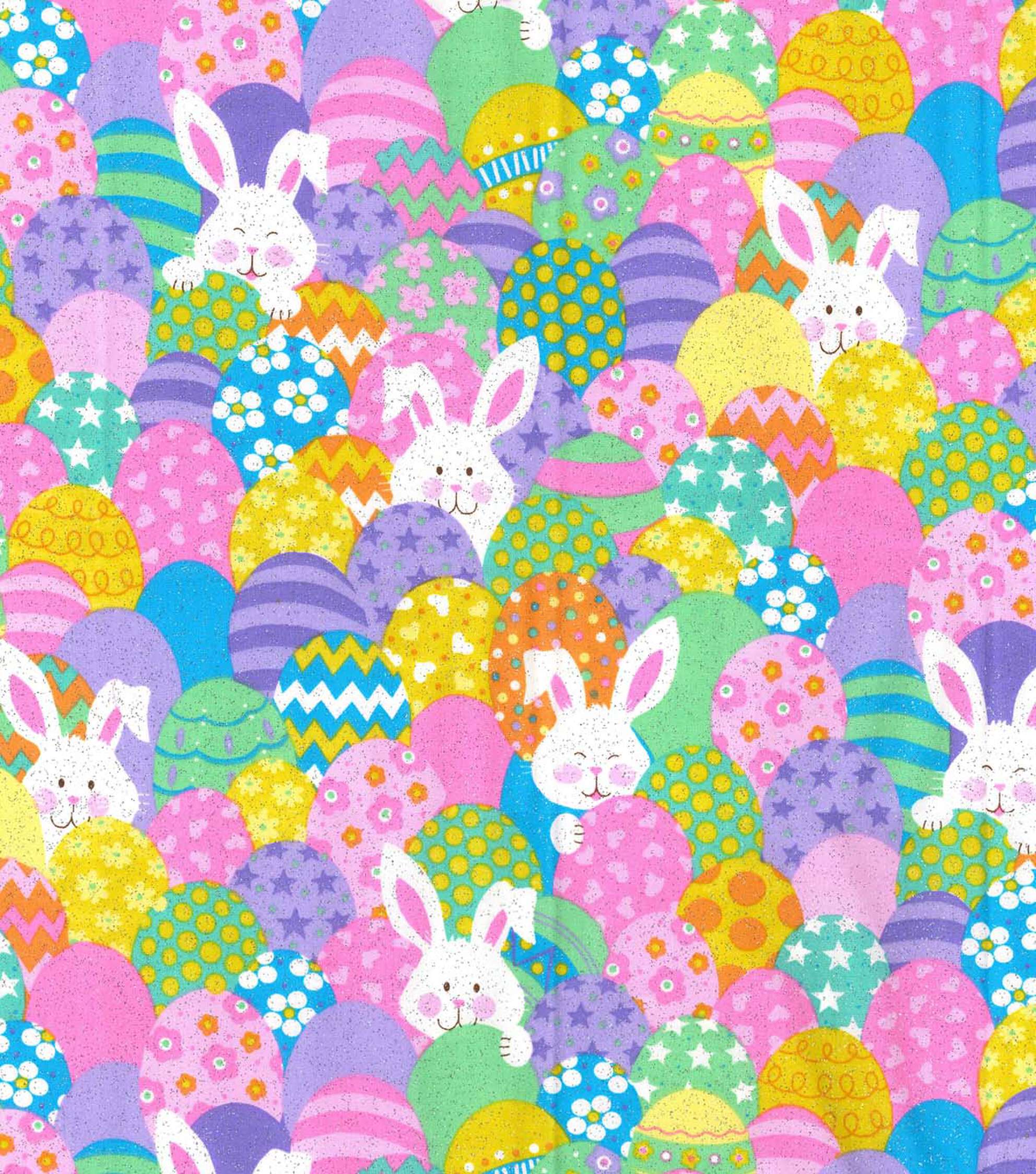 Fabric Traditions Bunnies & Eggs Easter Glitter Cotton Fabric