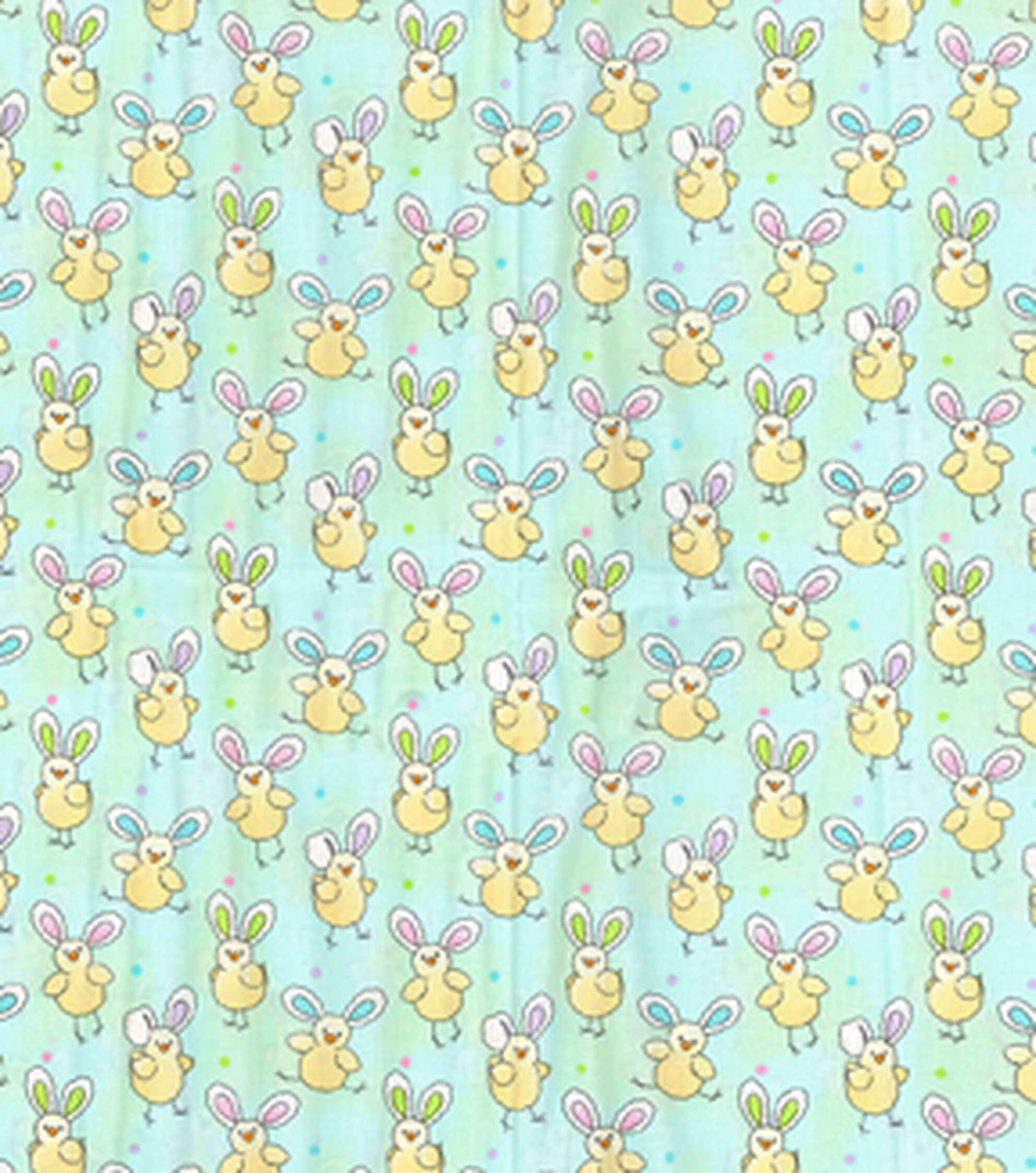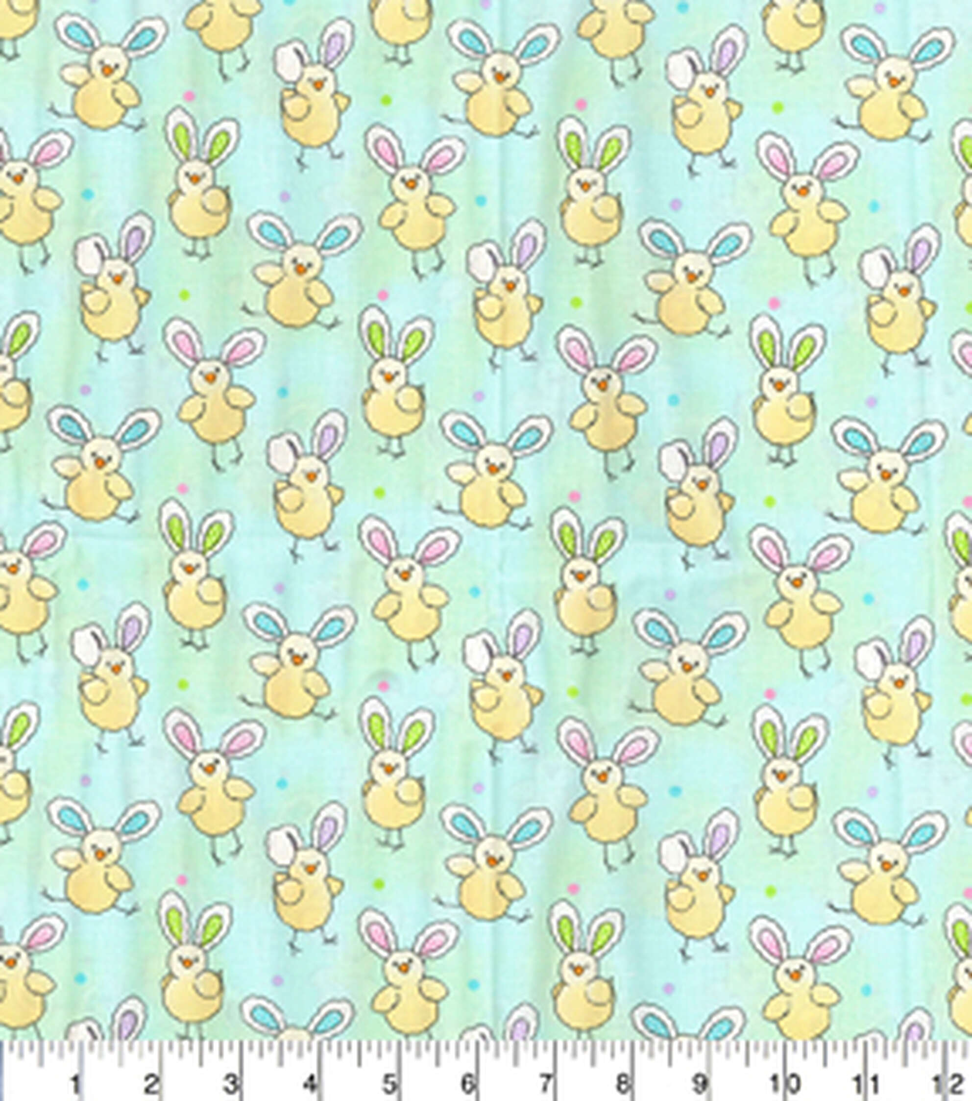 Fabric Traditions Chicks With Bunny Ears On Green Easter Cotton Fabric