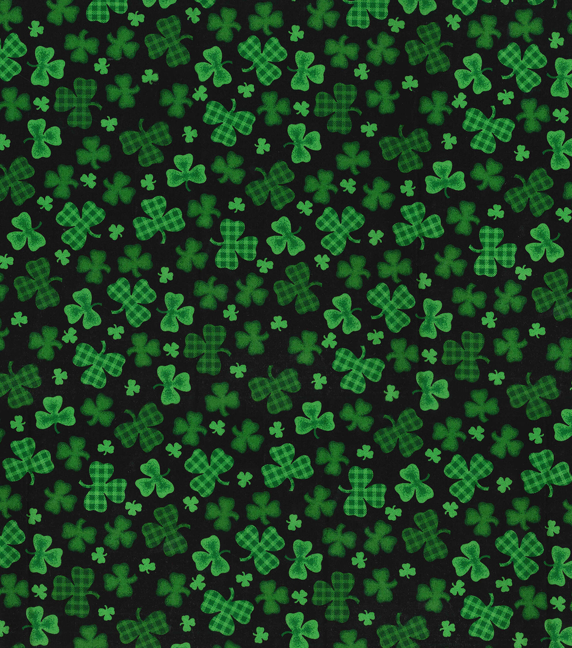 Fabric Traditions Gingham & Solid Clovers on Black St. Patrick’s Day Cotton Fabric