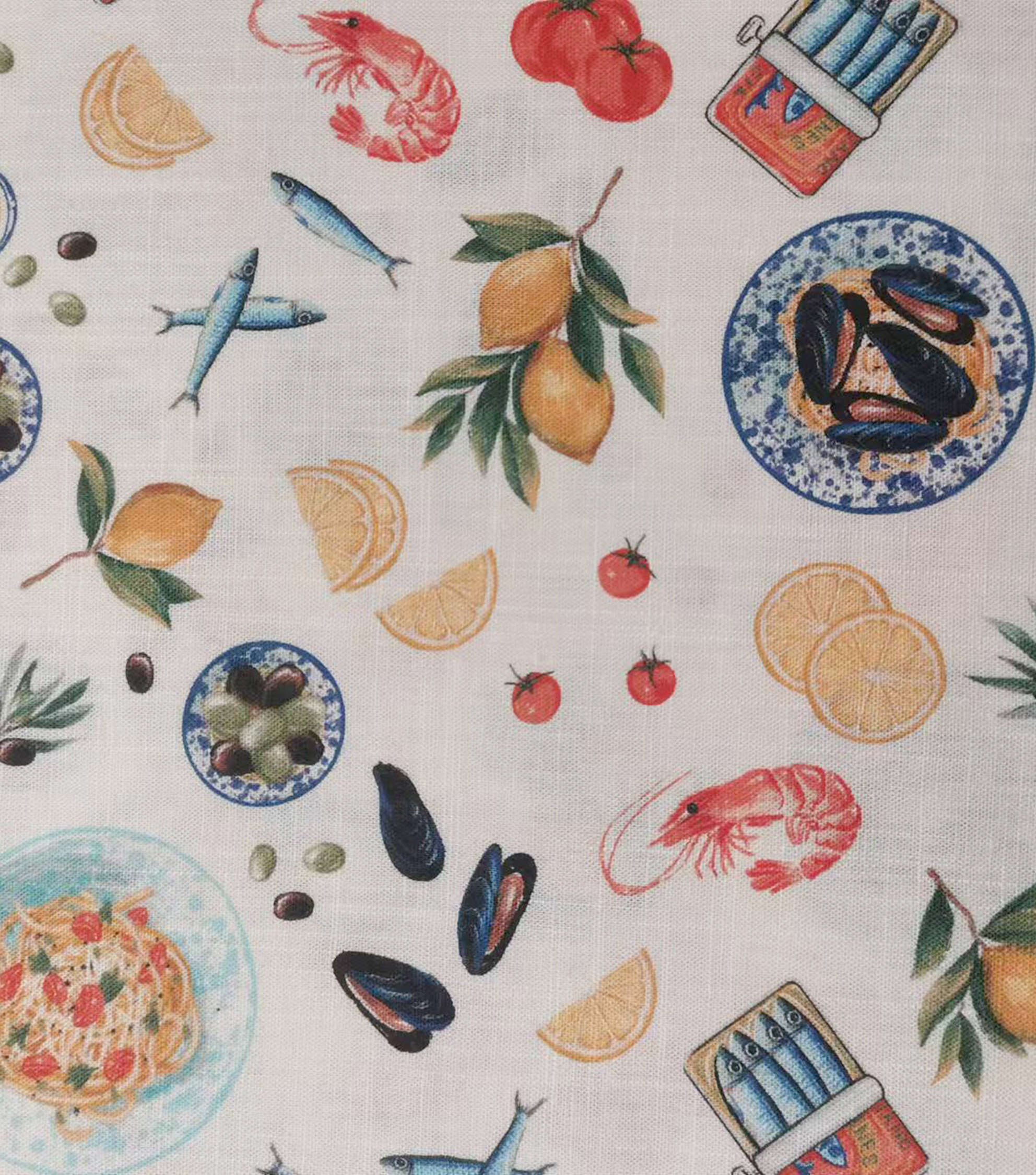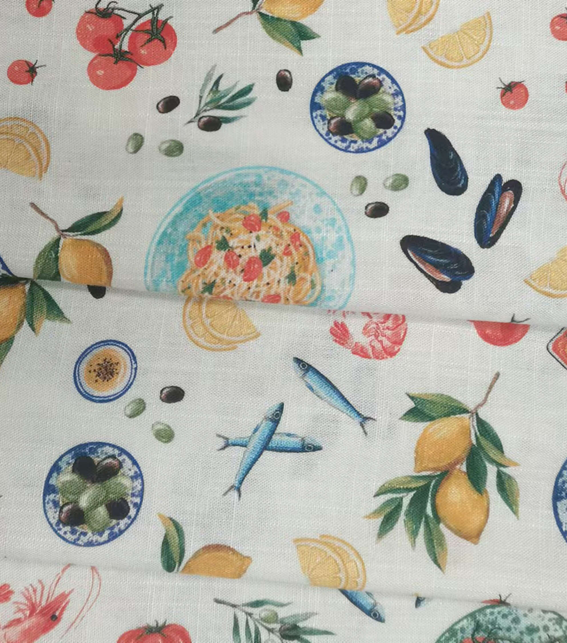 Upgrade Your Wardrobe with Food Icons on Cream Slub Linen Fabric