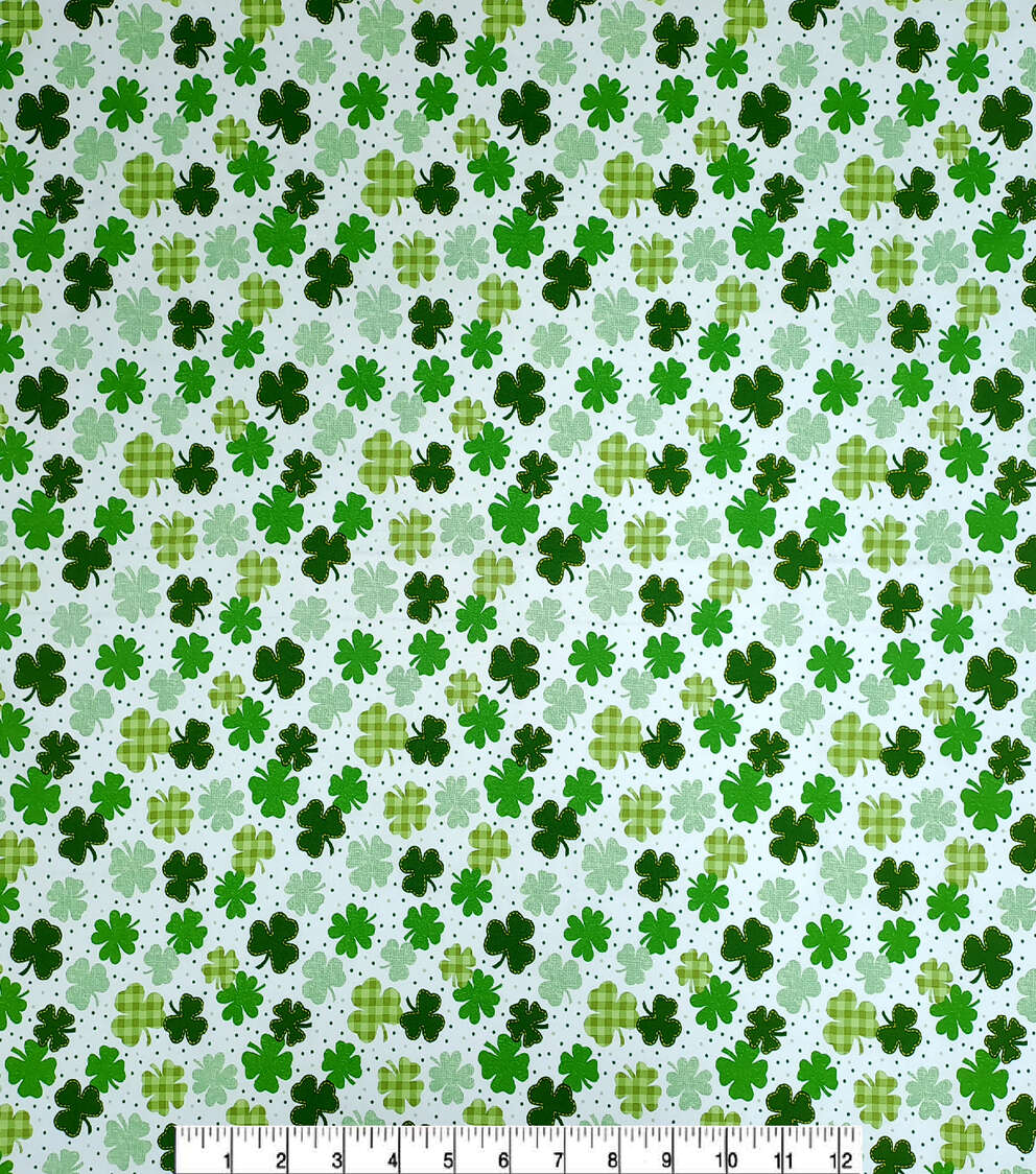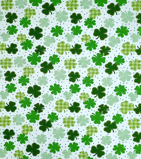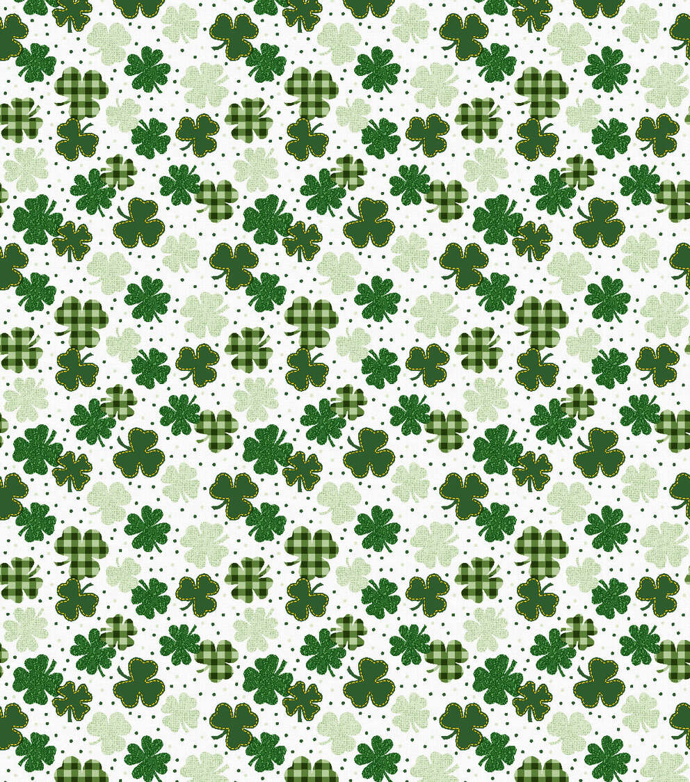 Gingham Clover On White St. Patrick’s Day Cotton Fabric