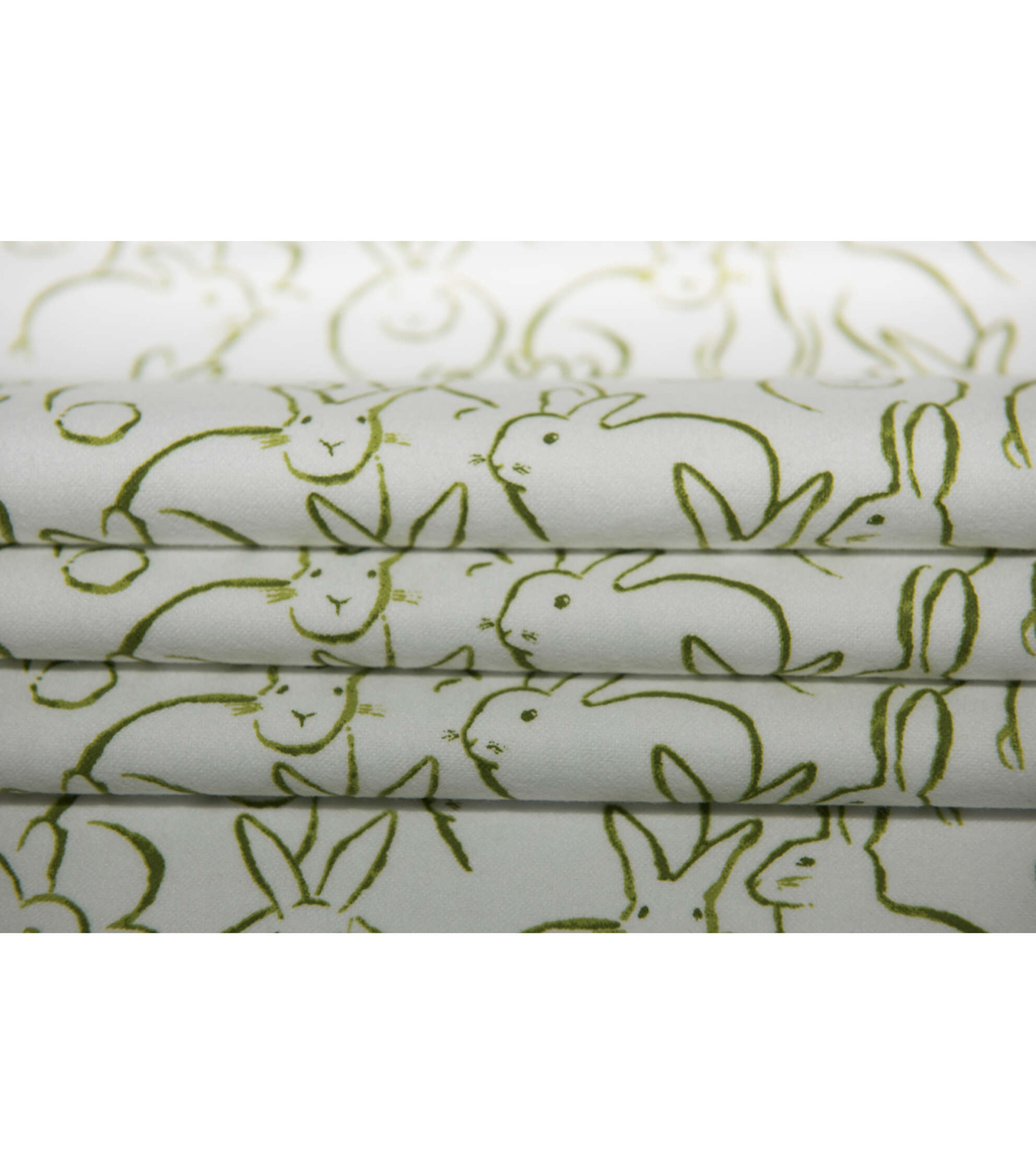 Green Bunny Outline Super Snuggle Flannel Fabric